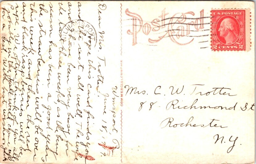 City:WilliamsportRegion:PennsylvaniaMaterial:PaperOriginal/Licensed Reprint:OriginalCountry of Origin:United StatesSubject:Post OfficeType:Printed (Lithograph)Era:Divided Back (1907-1915)Country:United StatesNumber of Items in Set:1Theme:Architecture, Cities & Towns, Community Life, Domestic & Family Life, Occupational, Patriotic, FlagUnit of Sale:Single UnitContinent:North AmericaPostage Condition:Posted