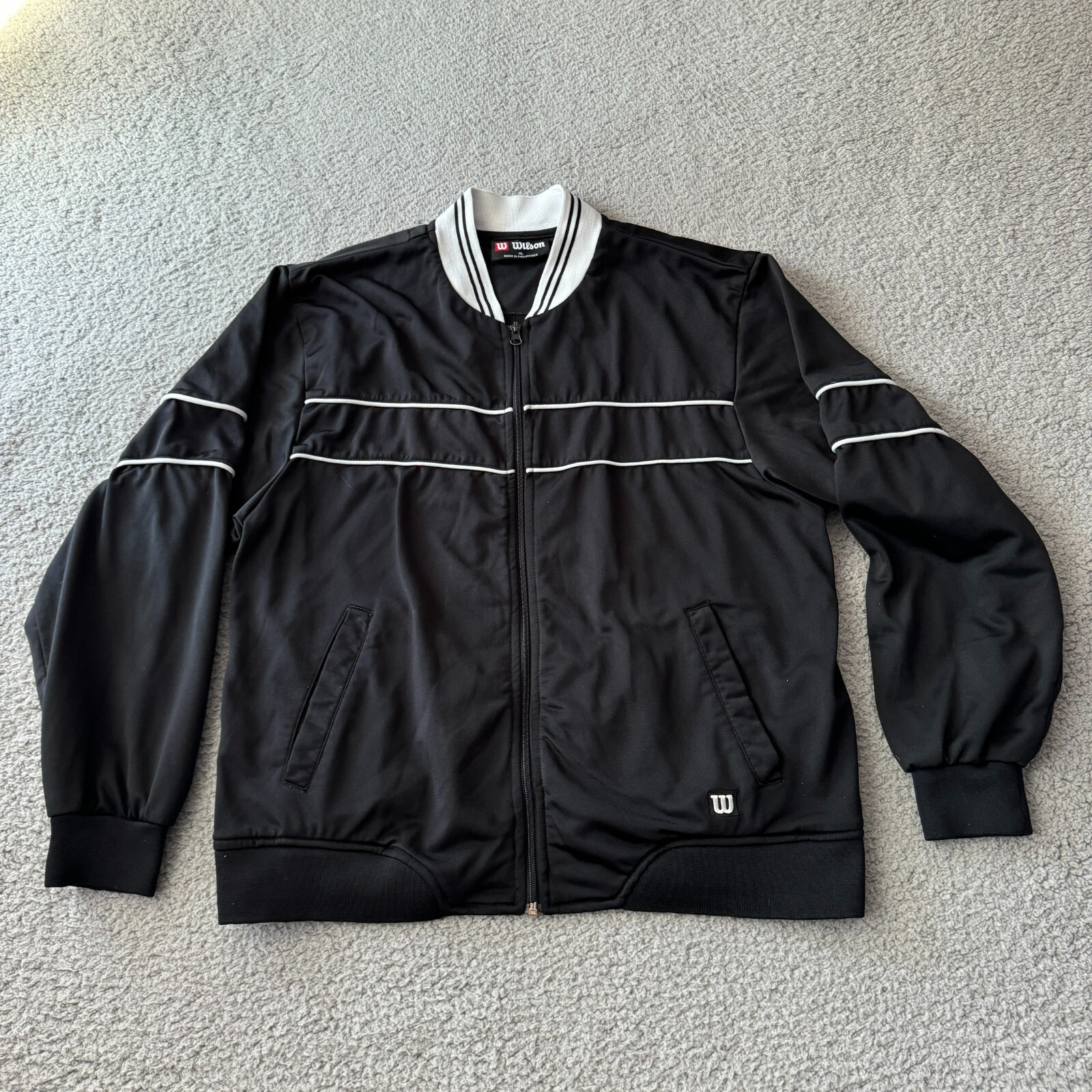 NEW Wilson Jacket Mens Extra Large Black White Full Zip Lined Bomber Outdoor Condition: New without tag. good condition. Please see all photos for condition and measurements. Please let us know if you have any questions. Thanks for shopping with us.