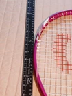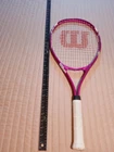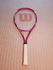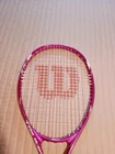The Wilson Triumph Pink Tennis Racquet features a grip size of 4 1/4” and belongs to the Wilson brand. It is a high-quality racquet designed for tennis players.