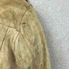 Has a spot on the back. Elevate your winter wardrobe with this luxurious Wilson's Leather Maxima suede jacket. Featuring a plush faux fur collar and lining, this coat offers both style and warmth. The tan suede exterior provides a classic look, while the brown fur adds a touch of elegance. Perfect for chilly evenings, outdoor events, or casual outings. The jacket's design includes snap closures and a comfortable fit. Ideal for pairing with jeans or dresses, this versatile piece is a must-have for the fashion-conscious woman. Type: Jacket Outer Shell Material: Leather Style: Basic Jacket Department: Women Color: Beige Lining Material: Faux Fur Fabric Type: Suede Accents: Fur Trim, Button Features: Lined, Pockets Pattern: Solid Jacket/Coat Length: Short Season: Fall, Winter Closure: Snap Occasion: Casual