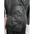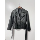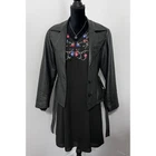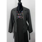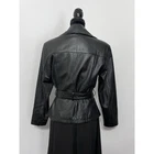 Wilsons Leather Women's Trench Coat is crafted from genuine black leather with a soft polyester lining, making it a stylish and cozy choice for the winter, fall, and spring seasons. The mid-length coat features a belted waist, button accents, and a classic trench coat style, perfect for a variety of themes including biker, rock, punk, and retro. The jacket is designed in a size small, ideal for regular sizing, and offers a sleek and timeless look for any occasion. Soft leather