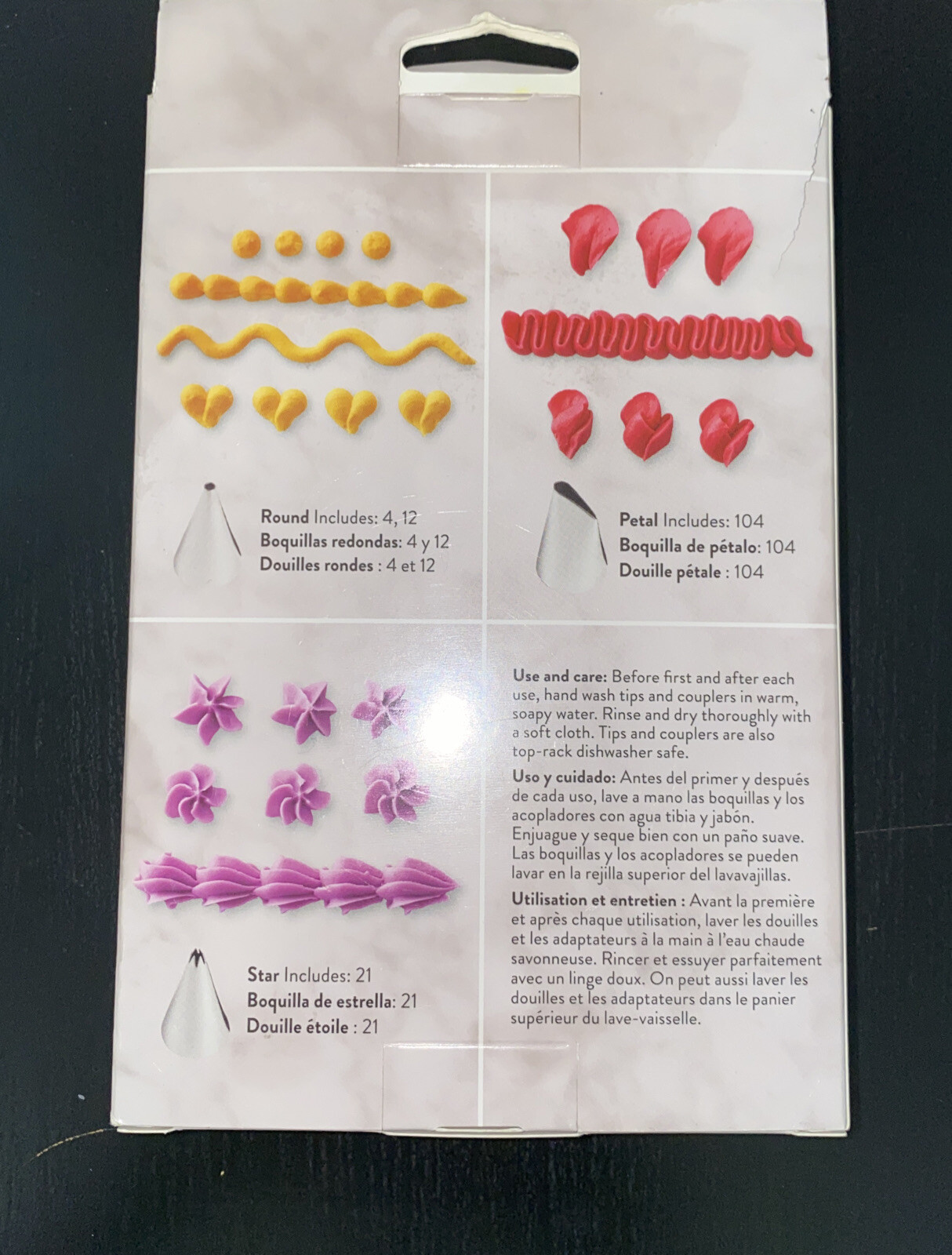 Wilton 18 Piece Cake Decorating Set Frosting Cupcake Cookie Kit Tips & Bags NEW. This set comes with 4 tips, 2 standard couplers, 12 frosting bags, and an instruction sheet. 18pc total. Perfect stars, hearts, flower petals, shell borders, swags, and more. Start Decorating using this set! Includes: 2 standard couplers, 12 disposable bags, 4 decorating tips, and illustrated decorating techniques! Tips are in the shape of circles, stars, and petals!