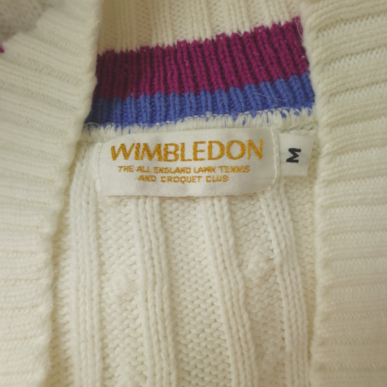 Wimbledon Sweater Womens Medium Cream Varsity Cable Knit Vintage Tennis Prep. Excellent pre-owned condition, very minor stain on the front bottom hem as pictured, no other stains, tears, or signs of wear noted, please review all photos. See photos for measurements. If we missed something, don't worry, we offer free returns. Just indicate, "just didn't like it," for any reason, and we'll pay for the return. Thanks for visiting!