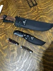 Winchester Knife Lot Lot includes Bowie knife with sheath, knife with sheath. Wooden handle with 2 blades and a 3 blade knife. No nicks or nothing broken. Great for gifts!