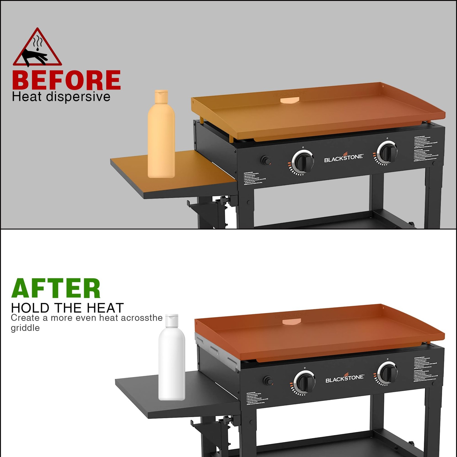 WIND GUARD FOR BLACKSTONE GRIDDLE OUTDOOR ACCESSORIES Backyard BBQ Parties Create an enjoyable grilling experience for your friends and family by ensuring that wind and gusty weather do not spoil the fun. Wind guards provide a worry-free grilling session regardless of weather conditions. Camping and Outdoor Adventures Take your griddle cooking to new heights with these wind guards. Enjoy delicious meals in the great outdoors without worrying about the wind affecting your grilling performance. Tailgating Events Impress your fellow sports fans with perfectly grilled burgers, steaks, and more. The wind guards offer unrivaled protection against gusts, allowing you to focus on the game while your food cooks to perfection. Professional Outdoor Cooking Ideal for professional chefs or avid griddle enthusiasts, these wind guards enable precise temperature control and eliminate heat loss. They are the perfect companion for achieving restaurant-quality griddle meals in your own backyard. Elevate your grilling game with the Wind Guard for Blackstone 36 Inch Griddle. Enhance safety, optimize gas usage and ensure efficient grilling performance in all weather conditions. Invest in these durable and seamlessly compatible griddle accessories to take your outdoor cooking to the next level. WIDE COMPATIBILITY: Compatible with almost all 22-inch Blackstone grills, except for the culinary series: 1666/1813/1833/1842/1860/1891/1935/ 1940/ 1944/ 1967/ 1968/ 2029/ 2061/2063/2144/2165/2166/2168/2169/2271/2272, and many more. Perfect to fit and not interfere with the rear grease cup, side shelves, hood and cover. 430 FOOD GRADE STAINLESS STEEL: Our blackstone griddle accessories wind guards are made of 430 stainless steel, which has properties such as heat resistance, high corrosion resistance, rust resistance and oxidation resistance. The maximum heat resistance temperature can reach 680 °F, and will not deform. EASY TO INSTALL, REMOVE AND CARRY: These magnetic Blackstone griddle accessories can be installed in a second on your Blackstone griddle by placing the magnetic side on the bottom of your griddle. And because they are compact and lightweight, these windscreens are also easy to remove and carry. MUST-HAVE OUTDOOR ACCESSORIES: 2 x Back Guard, 2 x Side Guard, Each guard has several oxygen intakes to get enough oxygen to burning while keep the wind out. Even in the windy outdoors, our griddle accessories allow the flame to function, creating a more even heat across the griddle and allowing you to better control the heat and roast more flavorful foods. SAVES PROPANE: Not only does the Wind Guard maintain the flame on windy days, it reduces heat escape, effectively preventing heat from reaching the plastic spice bottle on the side, and heats the griddle faster, saving propane.