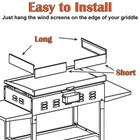 5016 Wind Guards for Blackstone 28" Griddle, Blackstone Griddle Accessories for Blackstone 28 inch Griddle, Wind Screens for Outdoor Cooking, Heat Shield, Compatible with Rear Grease Cup Strong winds can become a challenge, it can decrease the temperature or extinguish the flames while you are cooking. If you have the Wind Screen guards, you can griddle with more control without worry about the weather. The package includes 4 Wind Screens, 2 long and 2 short. Dimensions: 15" x 3.5"(long), 12.5" x 3.5" (short). Compatible with Blackstone 28" Griddle and Other matching size Griddle. Double check the length on your existing griddle before ordering! Compatible with Blackstone 28 inch griddle model (EXCEPT: Culinary Series): 1517 1605 1853 1856 1858 1883 1885 1924 1962 1983 2007 2080 2086 2094 2118 2145 2147. Easy to install. Just hang the wind screens on the edge of your griddle and you are ready to griddle on! This Wind Screen tool kit is the perfect addition to any backyard kitchen. Great product for anyone who enjoys bbq.