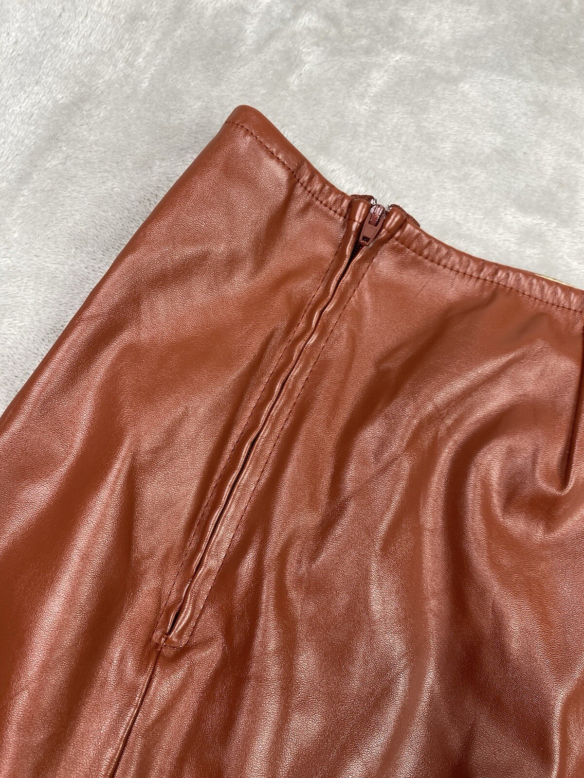 Elevate your style with the Windsor That's A Wrap Faux Leather Mini Skirt. This skirt is perfect for women who want to make a bold fashion statement. The skirt is made of high-quality faux leather and comes in a stunning cognac color that will complement any outfit. The wrap style adds a touch of sophistication and the skirt is designed to fit regular size L. The skirt is perfect for a night out with friends or a special occasion. It's short and trendy, making it a must-have in every woman's wardrobe. The skirt is available in the Clothing, Shoes & Accessories, Women, Women's Clothing, Skirts categories. Add it to your collection today and be the envy of everyone in the room.