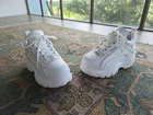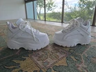 Lupe is a lightweight chunky platform women's sneaker, lace up design and rubber Bull logos on the upper. These babies are ICONIC. I would keep them but I need a size 9 and these are too tight for me. Price is low because I amconsodering the shipping cost. Includes and will ship out with the Naked Wolf dustbags. Leather upper Non leather fabric lining Suede leather tongue Windsor Smith Bull head logo branding Lightweight P.U chunky platform sole Round toe Padded topling Padded sports footbed