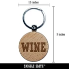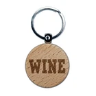Wine Fun Text Engraved Wood Round Keychain Tag Charm