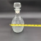 Number of Items in Set: 2 gtin13: Does not apply Item Height: 10 in Style: Vintage/Retro Country/Region of Manufacture: Unknown Theme: Bar Brand: Unbranded Occasion: All Occasions Seller Notes: “Very good. No chips or cracks. Stopper has light discoloration.” Type: Decanter UPC: Does not apply Set Includes: Decanter, Lid/Stopper Features: With Lid/Stopper Capacity: 1 qt Item Depth: 5 in Color: Clear Material: Glass Item Width: 5 in