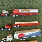 The trucks show normal wear from use. Some surface scratches, paint wear, and split tires. No cracks or issues. Please see pictures for more details.