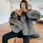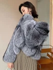 Winter Luxury Womens Leisure Leather Jacket Thickened Warm Silver Fox Fur Coat