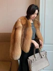 $ 14.22New 100% Fox Fur Collar Jackets Luxury Women's Thicken Warm Real Fur Party Coat