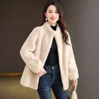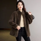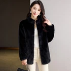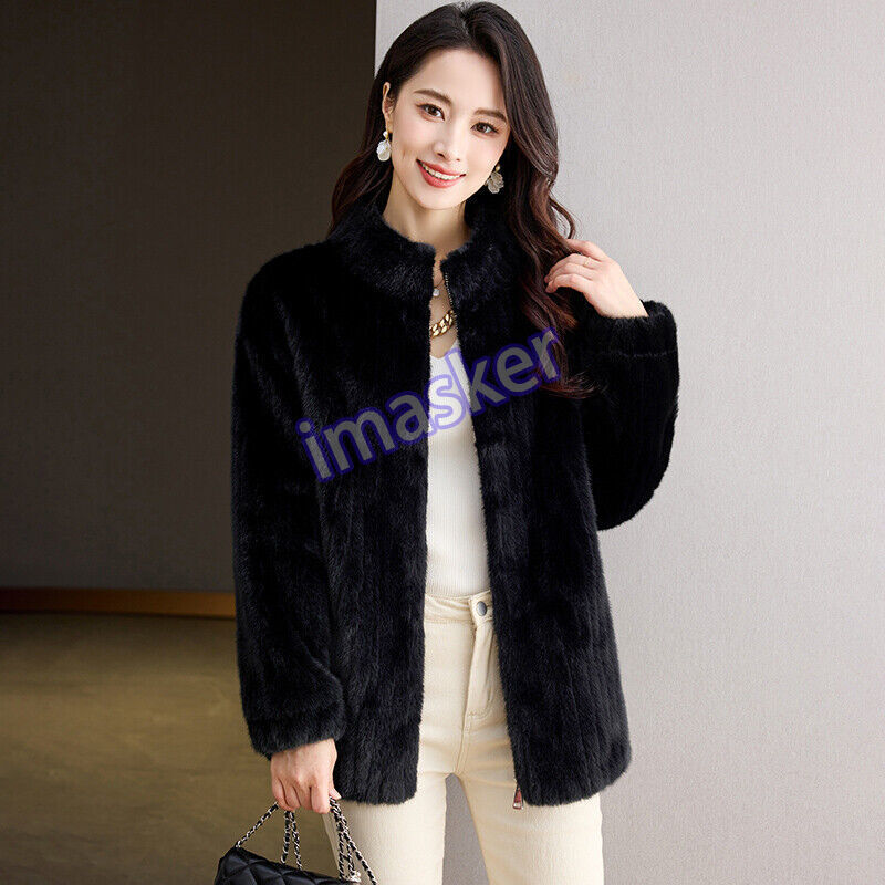 Mink Fur Coat Womens Short Winter New FauxFur Stand Collar Warm Slim Fit Jacket