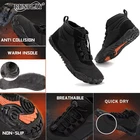 eBay Bullet Points: Comfortable and Stable: These barefoot boots have a wide toe box that provides enough space for your feet and does not squeeze them. You can enjoy the natural feeling of walking barefoot while staying stable and protected. Thermal Lining: Wrap your feet in these barefoot boots that have a short faux fur lining for extra comfortability. The thermal lining is skin-friendly and breathable, keeping your feet cozy and warm in cold weather. Anti-Slip Bottom: Our barefoot boots feature an anti-slip bottom with soft balance, which provides better anti-slip performance and helps you maintain correct posture. You can enjoy a safe and comfortable wearing experience with our boots. Effortless Comfort: Get the perfect fit with ease using our barefoot boots' quick laces. Setting the ideal tightness takes seconds, effortless and easy to wear. Wide Use: Whether you are hiking, cycling, jogging, or camping, these barefoot boots are suitable for any outdoor activity. They are lightweight, breathable, and flexible, allowing you to feel the natural terrain and train your feet muscles. Discover the perfect boots for mountain climbing! Our barefoot boots for men offer a wide toe box and great balance, making every climb effortless and comfortable. You'll enjoy the ultimate comfortability and support, essen/tial for any outdoor adventure. Specification: Material: PU+canvas+thick plush lining+rubber sole Size: 36-46 Weight: about 750-900g Product List: barefoot shoes wide toe box x1 Notes: 1. Due to the different monitor and light effects, the actual color of the item might be slightly different from the color which is showed in the pictures. 2. Please forgive a slight measuring deviation due to manual measurement.