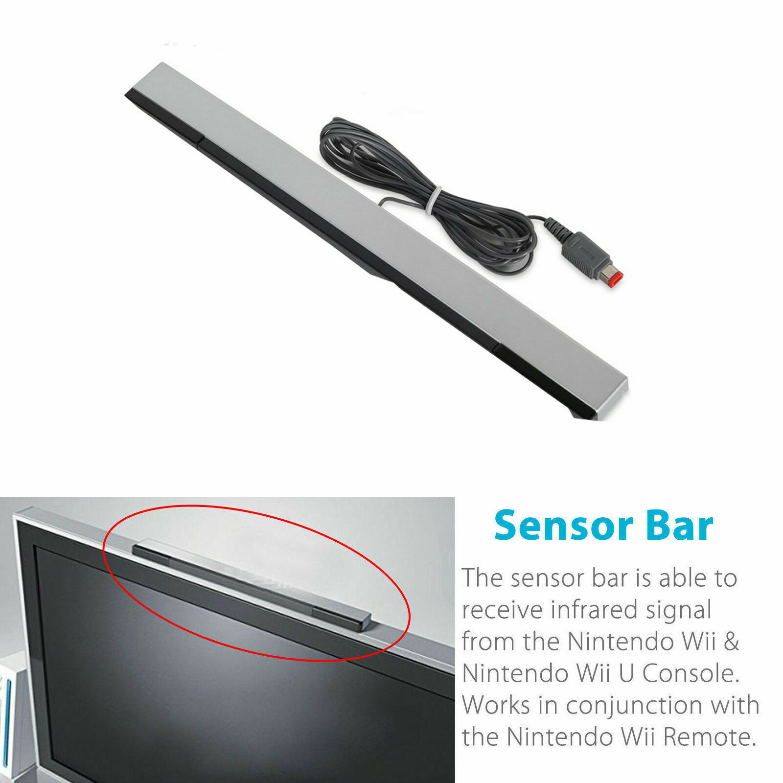 Brand New FAST SAME DAY SHIPPING Product Description The sensor bar is able to receive infrared signal from the Nintendo Wii & Nintendo Wii U Console and is the perfect replacement for a faulty or broken receiver. Works in conjunction with the Nintendo Wii Remote. Easy to use, only need connect the inductor's plug to the Wii console. More than 7ft cable ensures convenient placement of sensor bar. Product Features 100% brand new and high quality guaranteed. Wired Infrared IR Ray Motion Sensor Bar with Stand for Nintendo Wii & Wii U Console. The sensor bar can be placed either above or below the TV screen(Wii System Is Not Included). Easily play your emulators using the USB plug & play sensor bar. Connects to the sensor bar port on the pack of the Wii console. Great replacement for your lost or broken Nintendo Wii / Wii U sensor bar. Easy plug and play, all you have to do is adjust the calibration of the sensor. Long cable allows you to mount the sensor above your TV or on the wall without worrying about stretching the cable. Includes stand with adhesive for easy attachment to tv, monitor or any smooth surface. Wired Sensor Bar Only, Wii System Is Not Included. How to Use The Sensor Bar can be placed either above or below the TV screen. Decide which option best fits your television set up. Above the TV Screen: 1. Insert the Sensor Bar plug into the Sensor Bar connector on the back of the Wii console. 2. Mount the Sensor Bar to the top of the TV. 3. The front of the Sensor Bar should be aligned close to the front of the TV and the center of the Sensor Bar should be aligned with the center of the TV. 4. If you have not already done so, be sure to set the Sensor Bar option in the Wii console's System Setting to "Above TV." This will help ensure an optimal experience. 5. Reception may be improved by mounting the Sensor Bar to the top of the TV with the Sensor Bar Stand. Below the TV Screen: 1. Insert the Sensor Bar plug into the Sensor Bar connector on the back of the Wii console. 2. Mount the Sensor Bar to the front edge of the surface that the TV is sitting on. Do not place the Sensor Bar below the surface that the TV is sitting on (for example, on shelves below the TV). 3. The front of the Sensor Bar should be aligned with the front of the surface that the TV is sitting on. The center of the Sensor Bar should be aligned with the center of the TV. 4. If you have not already done so, be sure to set the Sensor Bar option in the Wii console's System Setting to "Below TV." This will help ensure an optimal experience. Package Includes: 1x Wii / Wii U Sensor Bar with Holder Shipping Details: Providing FREE SHIPPING Same Day within U.S.A All orders before 5PM Eastern Standard Time will be shipped out same day -- Monday through Friday. If we are provided with an incorrect shipping address we reserve the right to charge for any fees associated with any consumer related errors. Tracking is available upon purchase of "USPS First Class Package." Please be aware that we provide tracking for orders over 11.00 - if you do purchase tracking for orders over 11.00 unfortunately we won't be able to refund you the fee. Refund & Return Details: 30 Day Returns on all items purchased directly from us Return policy starts from day of purchase. Do not ship any items without prior contact. Return shipping is the responsibility of the buyer.