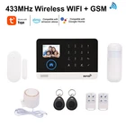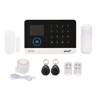 Overview: This alarm system contains a WIFI+GSM alarm panel, a PIR sensor, a door sensor, a wired siren, two RFID cards and two remote controllers. It supports for Amazon Alexa/ Home Voice Control and phone APP remote control. You can arm/disarm this alarm system via host, phone or remote controller. Advanced home automation functions for perfect smart home life. When the thief came in, the alarm will send out 110Db warnings to scare away the thief, or it will make auto-dial or send a message to remind you, so that it can help you reduce property loss and guarantee your home security. Features: *2.4" TFT LCD screen display and voice prompt for all operations. Support external wired siren, with squealing alarm sound. *WIFI+GSM alarm system with phone APP easily remote control. Including remote arm/disarm, parameter setting and accessory management. Push arm/disarm message to APP. (Note: APP for Android and IOS system.) *Support for Amazon Alexa Voice Control. It can compatible with IP camera, you can monitor your baby and the older in your home from whenever and wherever. *Support SMS and dialing alarm. Support 5 groups preset alarm phone numbers, SMS on/off and dial on/off can be set respectively. *Can remote arm or disarm by phone, and with intercom and voice monitoring function. *Multiple types of arm: Away arm, home arm, remote control arm, and remote telephone arm. *Support up to 100 wireless defense zones for remote control, RFID cards and wireless detectors. (You can add/delete remote control/wireless detector/RFID card as you need.) *Support system password and user password, when alarm is triggered, only can be disarmed by putting user password. Coercion password, secretly make calls in emergency. *Timing arm and disarm. Multi-language menu display (8 kinds optional). *Users can make calls by using keypad on alarm panel, just like a telephone. *Can store and inquire daily operation records and alarm records. Can record 20 seconds voice message and alarm voice. *RFID function for house care or kids usage, it’s convenient for them to disarm without knowing password. *In emergency, press the SOS button on the remote controller, the system will start to alarm and call the preset phone numbers automatically for help. *Built-in Lithium rechargeable battery: still can make alarm when power off. Specifications: Working Current: <120mA Standby Current: <80uA Wireless Frequency: 433MHz Encoded Mode: 1527 Wireless Standard: IEEE802.11b/g/n 2.4G Alarm Panel Battery: Li-ion DC 3.7V 500mAh (Included) PIR Sensor Battery: 3*AAA 1.5V (Included) Door Sensor Battery: 1*CR2450 3V (Included) Remote Control Battery: 2*CR2025 3V (Included) Siren Volume: 110dB Temperature Range: 0℃~55℃ Humidity Range: <80% RH (No freezing) Item Size: Approx. 18.5*12.5*1.2cm/7.28*4.92*0.47in Item Weight: Approx. 226g/7.97oz Package Size: Approx. 21.5*15*7.5cm/8.5*5.9*2.9in Package Weight: Approx. 516g/22oz Package List: 1 * Wireless Alarm Panel 1 * Wireless PIR Motion Sensor 1 * Wireless Door/Window Sensor 2 * Remote Controller 2 * RFID Card 1 * Wired Siren 1 * Bracket for PIR Sensor 1 * Set of Mounting Screws 1 * USB Charging Cable 1 * User Manual (English)