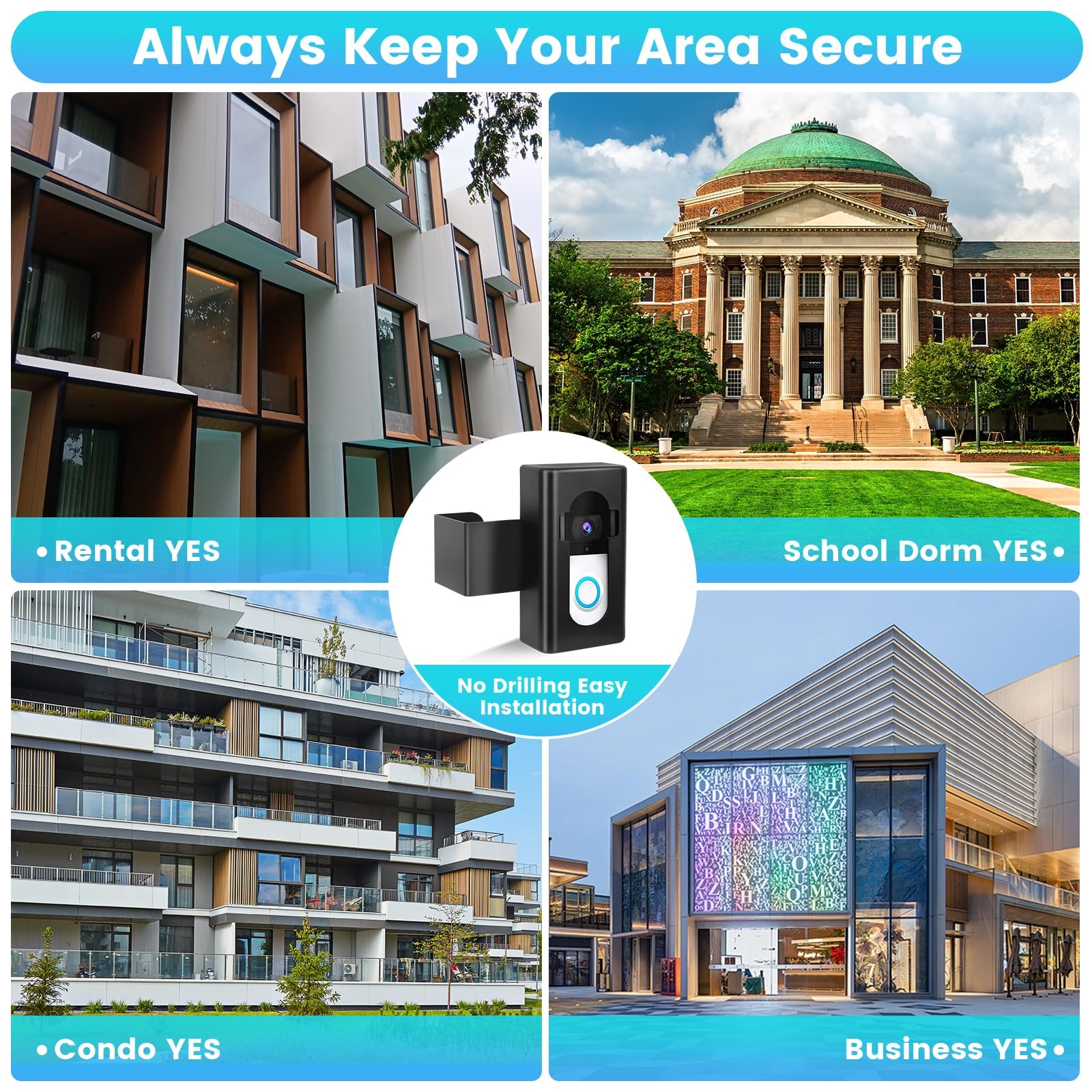 1 【Updated 2025 Anti-Theft Design】Focus on theft prevention while also considering aesthetics. The Anti-Theft Video Doorbell Mount can fully protect your doorbell, leaving the bad guys no way to do it. 【Compatible Doorbells】The anti-theft ring doorbell mount is compatible with most doorbells including Video Doorbell 1/2/3/3 Plus/4 and Video Doorbell (2020 Release). The maximum size of a video doorbell that can be placed inside is 2.55” wide * 5.11” high * 1.14” thick. 【Compatible Door】The doorbell camera mount is only applicable for inward-opened doors. (A door pushed inward to the left or right)The thickness of the door must be between 0.59 inches and 2.09 inches. Please make sure your door is thick before ordering. 【No Drill & Easy Installation】Put your video doorbell in the shell and lock it, then adjust the fixed clip. There is no need to drill the door and keep it intact. The package comes with Detailed Installation Instructions and Matching Accessories. 【ABS and high-quality metal】The doorbell holder clip is made of sturdy ABS and high-quality metal, stable enough to keep your doorbell from being stolen. Perfect for apartments, homes, houses, dorms, rooms, offices, study, rentals, hotels, businesses building and so on. Provide a safe environment for you. 【Appearance upgrade】 The appearance design comes from a senior designer, which makes the doorbell bracket better fit your door, while the black appearance makes your door look more atmosphere.