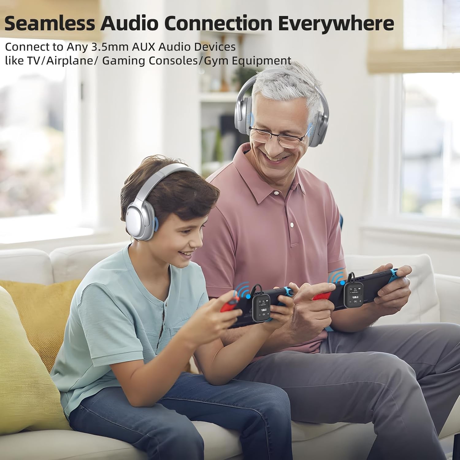 Airplane Bluetooth 5.3 Transmitter for All Headphones - Black Product Details Product Dimensions: 1.38 x 0.39 x 4 inches Item Weight: 2.39 ounces Item model number: RT7027Q1 Batteries: 1 Lithium Metal batteries required. (included) Manufacturer: 1Mii Brand: 1Mii Hardware Interface: 3.5mm Audio Color: Black Compatible Devices: Computer, Gym Equipment, Gaming Devices, TV, MP3 Player, Portable DVD Player, Airplane, iPad, Tablet Product Dimensions: 1.54"L x 0.55"W x 4.07"H Data Link Protocol: Bluetooth 【Bluetooth Adapter for Airplane】The 1Mii SafeFly Min 3.5mm Bluetooth transmitter is designed to transmit audio from in-flight entertainment systems to headphones, it up to Bluetooth headphones simultaneously. Besides, this Bluetooth airplane adaptor is compatible with any audio device featuring a 3.5mm audio jack, including computers, gym equipment, gaming devices, TVs, MP3 and portable DVD players.Note:This product is not compatible with Airpords Pro Gen 2. 【OLED Visible Bluetooth Transmitter for TV】1Mii SafeFly Min Bluetooth transmitter, its ease of use is unparalleled, thanks to the OLED screen that not only displays real-time battery capacity and volume levels but also shows the paired devices and audio format like SBC/aptX-HD/LL/AD. This feature eliminates all guesswork, enhancing your audio streaming experience remarkably. 【Low Latency High-Fidelity Audio】Experience crystal-clear sound with our Bluetooth transmitter for airplane, featuring the unique AptX Low Latency Technology. With latency reduced to less than 40ms, enjoy distortion-free audio that enhances your listening experience. This cutting-edge technology ensures seamless connectivity, especially when paired with aptX-enabled devices. Note: Your paired device must also support AptX LL for optimal performance. [Bluetooth 5.3 Plug and Play] 1Mii SafeFly Min airplane Bluetooth adapter features Bluetooth 5.3 technology, delivering a robust wireless signal and seamless, barrier-free transmission for up to 20 meters. Enjoy the freedom to move around freely on planes or at home, immersing yourself in wireless audio bliss. 【Extra Notes】①It is a Bluetooth Transmitter ONLY. ②To ensure optimal battery life, the transmitter will automatically power off if there's no Bluetooth connection or audio stream for more than 5 minutes. Simply restart the transmitter when you're ready to use it again. ③SafeFly Min feature industry leading aptX Low Latency Codecs, to avoid latency issues, make sure your device supports Bluetooth 5.3. 【Extra Notes】Please note that our product is not suitable for musical instruments such as hearing aids and guitars and APTX mode requires the device you are paired with to also use low latency mode