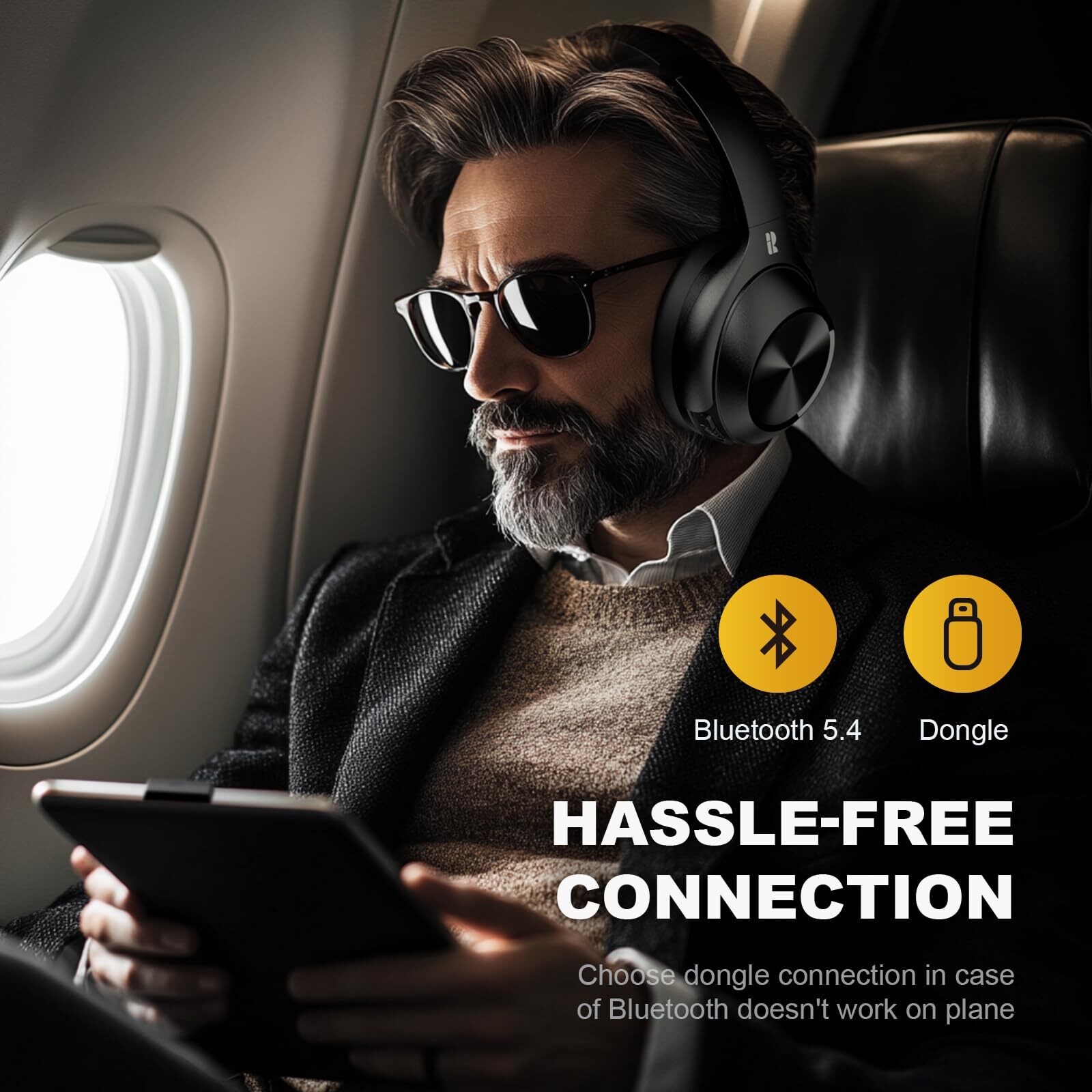 INSPIRING HI-RES AUDIO: Adopts 40mm dynamic driver and titanium-coated diaphragm to achieve uniform driving force across the entire surface, ensuring original sound, low distortion and fast response. Put simply, you can hear music with every details, deeper bass, and clear treble NOISE CANCELLING WITH TRANSPARENCY: Powered by advanced chip with AI algorithm, ANC microphones detect sound coming in, working together to counter noise before it reaches your ear for maximum immersion, and transparency mode lets you hear what's going on around you TWO CONNECTIVITY OPTIONS: The bluetooth headphones can be connected to two devices via Bluetooth and dongle. Bluetooth V5.4 ensures a stable, smooth and fast transmission connection. Dongle with USB-C/USB-A enables plug-and-play connection to almost all devices, such as computers, tablets, TVs or smartphones ENJOY YOUR MUSIC LONGER: Enjoy unrivaled 60-hour battery playtime on a single full charge, with ANC switched on. 90 hours of continuous music with ANC off push boundaries and maximise uptime to give you more time to immerse in your music CLEAE CALLS AND LOW LATENCY: Built-in ENC mic, the wireless headphones actively suppresses ambient noise and enhances voice clarity, providing clear call quality wherever you are. In addition, the hybrid active codec maintains original hi-res audio with minimum latency of only 40ms end-to-end CUSTOMIZABLE SOUND EQ: Explore Rythflo app for enhanced features such as personalized EQ, control options. Choose from five preset EQ modes or customize your own EQ settings to match your unique music preferences DESIGNED FOR COMFORT: Noise cancelling headphones is soft to the touch, sturdy in build. Protein leather and memory foam crafted into extremely comfortable over ear headphones with adjustable headband and an elegant, foldable design