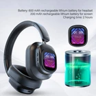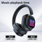 【Wih Multifunctional Magnetic touch screen headphones】: The Headphone various functions can be easily controlled through the screen of the headphones. This includes answering calls, smoothly switching music, easily setting alarms and Date&Time, and even remote control for taking photos, come with 18 languages and 3 beautiful lock screen wallpapers to meet your usage requirements; there has 10 levels of screen brightness adjustment, so you can see the screen clearly even in the glaring sun 【Professional Hybrid Active Noise Cancellation】: The Hybrid Active Noise Cancelling headphones reduce up to 33dB of noise so you can completely immerse into your rhythm whenever you need. Or if you need ambient sound, the Transparency Mode ensures you’re aware of your environment while you enjoy your music. The sensitive buttons control makes it easy to switch between this two modes. 【Wireless Bluetooth 5.3 Connection And Foldable Design】: Foldable and adjustable design makes our wireless headphones suitable for different head sizes people. Bluetooth 5.3 connection technology enables ultra-fast and stable connections within a range of 33 feet (10 meters). Compatible with All Devices with Bluetooth Enabled or 3.5mm Audio Jack. ❗ ❗ Notice: There is no active noise cancelling function with 3.5mm audio cable, you should use bluetooth mode for ANC function instead. 【Premium sound quality, Deep Bass】: The 40mm drivers reproduce a full range of frequencies, providing deep, powerful, and immersive sound at any volume. built-in high-definition microphone, can clearly capture your real voice when using voice assistant, video conference, or online class. 【Ultra-Comfortable Design】: headphones have fully adjustable earcups with ultra-soft noise isolation padding to fit snugly over your ears and block out background noise. 90° inward rotation, and 120°inward folding ear-cups are lightweight for maximum comfort during long periods of use. The lightweight build also ensures they’re comfortable for long listening sessions. Specification: Bluetooth version V5.3 IWorking distance) ≥10M Charging port:Type-C Battery: Headphone 600 mAh +LCD Screen 200 mAh Charging time: about 2-2.5H Standby time about 300 H BT about 70H Music play time BT+ANC about 45H(70% volume) Dual Device Connection Speaker Driver Units Ф40mm Impedance 32Ω±10% Speaker Sensitivity 108dB±3dB Frequency response 20Hz~20KHz Feature: Ergonomic design, more comfortable to wear Hybrid Active nosie cancelling With Multifunctional Magnetic Touch Control LED Screen Metallic headband Soft snug leather , comfortable and durable Foldable、Rotatable and stretchable design,portable to take Super music working time High imitation protein material + inert sponge earmuff 3.5mm jack line wired headphone+Bluetooth Fashionable and unique design The interface introduction(LCD screen): 1.Music play Previous song/next song, music play/pause,display Lyrics 2.Volume adjustment Volume up/down 3.ANC mode ANC mode,normal mode,transparency mode 4.EQ adjustment(5 different EQ choice) Normal,rock,pop,classic,jazz mode 5.Alarm Can be user-defined 6.Brightness of screen Can adjust the degree of brightness 7.Language switch There are 18 different Languages for choice 8.Lock screen Wallpaper Can be user-defined 9.Light Can turn on the light or turn off the light by touch the screen 10.Date&Time setting Can be user-defined 11.Take photos If the headset is connected to mobile by bluetooth,and turn on the camera of mobile,then can take photos by click 12.Give a like If the headset is connected to mobile by bluetooth and play some video on the app of mobile,then can click the screen to give a like what's in the box: 1 X Headphone 1 X LCD screen 1 X 0.5m Type-C charging cable 1 X 1.2m AUX cable 1 X Storage pack 1 X User manual (8 Countries UK/ES/RU/PT/FR/DE/JP/IT language)
