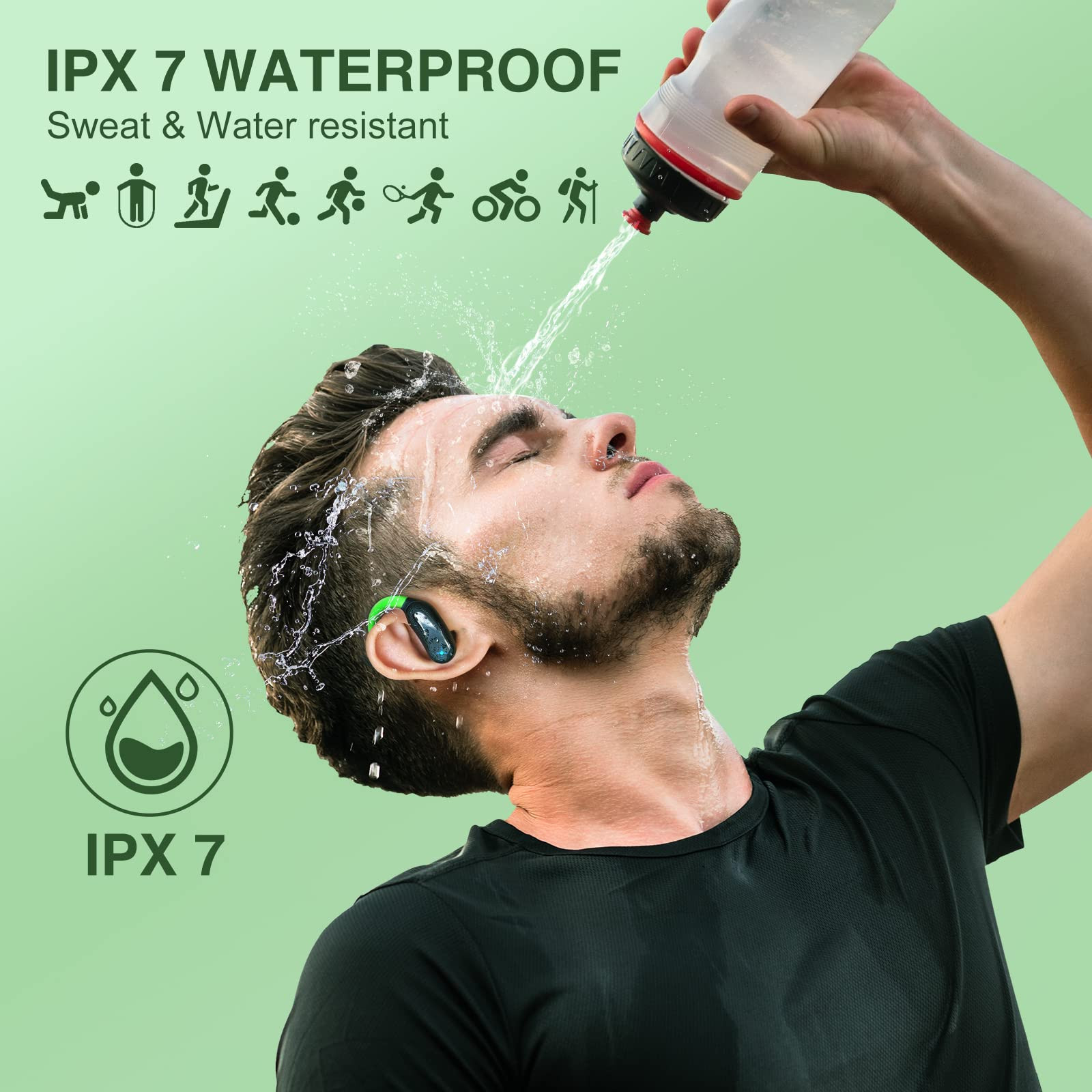 48Hrs PLAYTIME AND LED DISPLAY CHARGING CASE: This Wireless Sports earbuds comes with LED Digital display to clearly the remaining battery of charging case by the number on the screen.And the earbuds with earhooks can last for 9hrs Single Playtime when full charged. This earbuds with Charging case can get up to 48hrs playing time.The True wireless stereo earbuds perfect for workout,night running,gym,working,hiking, jogging. COMFORTABLE AND IPX 7 WATERPROOF: This bluetooth earbuds designed for sports.Adjustable silicone earhooks fit your ears better, so you won't feel uncomfortable when you're exercising and won't worry about your earbuds falling off.With 3 pairs of ear caps, you can choose the right size according to your needs to make your ears fit more comfortably.IPX7 waterproof protection that defends against water drops or sweat to damage.You can also use the earbuds when taking a shower.(Not for swimming) EASY TOUCH CONTROL AND AUTO PAIRING: Pick up the workout earbuds from charging case,they will power on.Then active bluetooth to search “i27” to connect. Auto pairing technology ensures an automatic connection to the last paired device when picking up the earbuds.When you put it back, the wireless earphones shut down and are recharging.Multi-function touch panel on the earbuds helps to play/pause, adjust volume, answer/end calls, activate voice assistant. INTELLIGENCE 5.1 CHIPSET: The version 5.1 Bluetooth chip technology, lightning-fast and ultra-stable connection, providing a seamless, immersive experience. Excellent 5.1 version makes the over ear earbuds whole system more stable, has lower power consumption, Prefect for sports,listening to music, and the call will not be interrupted for a long time. STEREO AUDIO AND CLEAR PHONE CALL: The wireless bluetooth earbuds use silicone microphone,built-in 11mm speakers and Ceramic Antenna to provide clearer and more stable sound for your calls,no interference from outside noise when talking, listening to music.Lets you immerse yourself in your own world.