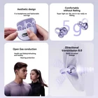 Binaural Noise Cancelling Open Ear Clip Wireless Bluetooth Headset On-Ear Features: Comfortable and Secure Fit: The ear clip design a fit on your ears without the need to insert them into the ear canal. It stays in place even during sports activities, providing maximum comfort. Bone Conduction Technology: Utilizes advanced bone conduction technology, which transmits sound through the in your head. This allows you to be aware of your surroundings while enjoying music or taking calls, enhancing during outdoor sports. Open - Ear Design: With an open - ear design, it offers a natural listening experience. You can hear ambient sounds such as traffic or people talking, making it suitable for running, cycling or other outdoor workouts. Wireless and Bluetooth : Connects wirelessly to your devices via Bluetooth. Say goodbye to wires and enjoy the freedom of movement during . Effective Noise Reduction: Despite open - ear, it provides effective noise reduction. It filters out background noise, allowing you to focus on your music or phone calls without distractions. Product Description: Material: Plastic Color: as the picture shows, (Due to the difference between different monitors, the picture may have slight color difference. please make sure you do not mind before ordering, Thank you!) Package weight: 100g Package size: 8x6x4cm,(Please allow 1-3mm error due to manual measurement. please make sure you do not mind before ordering.)