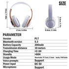 Noise Cancelling Headphones Wireless Bluetooth Over-Ear Headphones Foldable NEW Product Features 1.Foldable Design: Headband Bluetooth Headset with foldable design, easier to put into a pocket, bag or other small storage space, can greatly reduce the occupied space. 2.Built-in Microphone: The Over Ear Headset has a built-in microphone, so you can easily make phone calls without having to hold the phone close to your ear, which is very convenient for those who need to use the phone while driving, exercising, or taking care of other business. 3.Equipped with 3.5mm Audio Cable: When the Bluetooth Headset is low on power or you want a more stable audio transmission, you can use the 3.5mm audio cable to connect the headset directly to audio devices (such as cell phones, computers, etc.) for wired transmission. 4.Large Battery Capacity: Wireless Headset built-in high-capacity lithium battery, with a long battery life, you do not need to charge frequently in the process of use, you can enjoy a more durable music, call experience. 5.Comfortable to The Ear: The Over Ear Wireless Headset uses 40mm large dynamic circle driver and PEEK diaphragm material, which can present outstanding bass effect, and even if you wear it for a long time, you won't feel booming head or discomfort. Specification: Version: V5.0 Signal-to-noise Ratio: 88db Transmission Distance: 10 meters Output Power: 35mW Bluetooth Frequency: 2.401-2.480GHz Charging Time: 3 hours Usage Time: 6-8 hours Standby Time: 18 hours Moving Coil Speaker: 40mm Battery Capacity: 150mah Voltage: 5V Height: 16cm/6.3in Product Includes 1xUSB cable 1xHeadphone 1xAudio cable 1xInstruction manual On Dec 18, 2024 at 13:28:43 PST, seller added the following information: