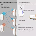 roduct Description Wireless doorbell Just for your convenience ! 【Features】 - Product name : Wireless Doorbell - Color : White With Gold Edge- Advantage : Super Strong Signal - Strong wall through and stable signal, advanced intelligent technology ensures signal output. Easy to transmit signal through wooden doors, metal doors, exterior walls, stone walls and brick walls. - Weatherproof design : Our wireless doorbell can also be used in rainy days, safe and durable. - Waterproof grade : IP44 Waterproof (Suitable for outdoor use) - Working temperature : -4℉~149℉ - Wireless range : Up to 1,000 ft in open area. -52 ringtones options, choose your favorite music at will. 5 volume levels can be chosen freely, and it can reach 110 dB. - The sound is crisp and loud, and it is also friendly for people with hearing disabilities at home. - Blue LED Flash Indicators - Flashing light with audio alert indicator 【Modern and Practical Design】Our wireless doorbell comes with stylish appearance and practical functions. Lightweight and sensitive, there are illuminated halo and LED strobe alerts on the receiver. Operating range up to 1000ft in open area, offer you fast indication, which ensures you to hear the bell and answer the door in time. 【5 Volume 52 Ringtones For Your Choice】 There are 52 ringtones and 5 adjustable volume levels(included silent mode) to choose from. The 52 kinds of ringtones can be chosen as per you like. With adjustable volume from 20db to 110 db, it will suitable for most of your room. 【Easy Installation】 No batteries & plug receiver required. The easily installed transmitter will be set up in only several minutes.And there are 2 ways to place your receiver-by sticker & screws. 【More Than a Door Bell !】Expand applications by yourself, e.g. use it as a dog or a cat training assistant device. 【Reminder & WARRANTY】If continuous button pressing is required, please press again the button after the ring sound stopping rather than continuous button.You will get a full refund or a brand new replacement if you are not satisfied with it.///