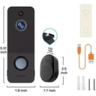 100% Wire-Free Design: Designed for 2.4G Wi-Fi (5G Wi-Fi not supported), this doorbell camera comes with a free Doorbell Chime to ensure you never miss a visitor, no matter where you are. Smart AI Human Detection: Enable the AI human detection function to accurately identify people and ignore other moving objects like cars and trees. Two-Way Communication: Engage with visitors anytime, anywhere for seamless communication. Secure Cloud Storage: Enjoy AES-128 encrypted cloud storage with an optional subscription plan (sold separately). Experience the convenience of the subscription plan with a 30-day free trial, allowing you to record, review, and share your videos. Advanced Night Vision: With six infrared lights and an intelligent IR sensor, monitor your home day and night with clear, high-resolution video in low-light conditions. Product Description When it comes to security, trust better quality. High-Definition Wide-Angle Len Capture crystal-clear footage with a wide-angle lens, offering real-time live view or recorded videos with sharp details. Smart AI Human Detection Enable the AI human detection function to accurately identify people and ignore other moving objects like cars and trees. Secure Cloud Storage Enjoy AES-128 encrypted cloud storage with an optional subscription plan (sold separately). Experience the convenience of the subscription plan with a 30-day free trial, allowing you to record, review, and share your videos. Wherever and Whenever, Safety in Family Control Easily share door camera access with friends and family , so no matter where you are, everyone can catch up on the latest events. The owner account can share to 8 other accounts. Up to 3 users may view the video feed at one time, and only 1 user can use the intercom at one time. Free Chime Included Place the free doorbell chime in your dining room, kitchen, or courtyard to hear when someone rings your doorbell. One smart doorbell can be paired with multiple indoor chimes. Weather-Resistant IP65 dustproof and waterproof certification ensures the video doorbell can withstand rain, sun, heat, or chill, providing reliable security all year round. Helpful Tips 1. Please first remove the battery door to access the insulation tape located at the bottom of the battery, and remove it accordingly. 2. The included batteries are rechargeable, and the doorbell features a USB charging port at its rear. Be aware that a charging adapter is not provided. 3. Ensure the batteries are fully charged before mounting the doorbell. Use the provided USB cable and a DC 5V 1A or 5V 2A power adapter (a phone charger will suffice) to charge the device. 4. The indoor chime is equipped with a USB port, so you will need an existing USB adapter or USB outlet for power. 5. This wireless video doorbell is ONLY compatible with 2.4GHz Wi-Fi networks. Please make sure to use a high-speed, stable Wi-Fi connection. What's in the Box? 1* video doorbell camera 1* wireless indoor chime 2* rechargeable batteries 1* USB charging cable 1* double sided adhesive tap 1* screw pack 1* manual Doorbell Camera-Grey Doorbell Camera-White Video Doorbell-Grey Video Doorbell-White Wi-fi connectivity 2.4Ghz only 2.4Ghz only 2.4Ghz only 2.4Ghz only Connection Wireless Wireless Wireless Wireless HD video quality Removable battery pack