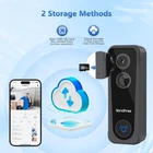 Wireless Doorbell Camera with Wireless Chime, 2K Video Doorbell Wireless, , 2-Way Audio, Night Vision, Battery, Cloud SD Card Storage, Compatible with Alexa, Google Assistant, Grey š”ćDoorbell Camerać2K HD and 3 million pixels picture quality is clear and motion detection sensor that will sound an alarm to you when motion is detected; 120° wide angle view is more accurate capture of image; IP65 material casing, this wireless video doorbell is water and dust resistant;IR night vision has high definition resolution so you won't miss any details even in low light environment. šøćCloud or SD card StoragećThis smart doorbell camera not only can use cloud storage but also can support up to 128G SD card storage (SD card is not included in the product, need to buy separately). 7-day rolling forever free trial of 6-second video cloud storage. šć5200mAH Battery & Wireless Chimeć 5200mAH 18650 lithium battery power longest standby time can reach 5 s. On average, it can be used for 2 s after being woken up 20 times a day on a full charge; Doorbell camera wireless with free chime, can be placed anywhere,powered by 3 x AAA batteries. šć WIFI & Alexa & Google Assistantć WiFi,does not support 5Ghz WiFi. Works with Alexa and Google you have any questions about this wireless smart video doorbell, please contact me and we will reply you within 24 hours! š”ćEasy to install & Package IncludesćSurveillance Video Doorbell for home comes with all mounting accessories and installation instructions that you can easily to mount the doorbell on the side of the x Video Doorbell; 1 x Wireless Chime (with 3 of AAA batteries) ; 1 x Type-C Cable; 1 x Installation Instructions; 2 x Stickers; 2 x Screwdriver; 3 x Expansion Screws; 3 x Screws.