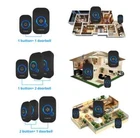 Product Feature This smart wireless doorbell adopts advanced wireless transceiver technology, high-quality voice processing technology, and its performance is stable and reliable. The doorbell, anti-theft, is welcome multi-purpose. Suitable for home, villa, shop, hotel and office, etc. Smart wireless doorbell When you press the button,doorbell will receive the signal and you will hear the sweet tunes immediately. Infrared detecter welcome mode When the infrared detects a moving object will send a signal to the doorbell, the doorbell emits a welcome sound. Door sensor alarm mode Install the door sensor on the door or window. When someone pushes open the door and window, the doorbell receives the signal and will alarm. 150M long distance transmission Long operating range can be up to 500ft(150m) in open space,great for large house including villas, apartment, offices, shops, warehouses, etc. 32 Songs &4 Level volumes adjustable 32 ringtones for your option,you can select regularly,and don't feel bored,avoid the same ring with the neighbors. The volume can be adjusted according to the different environment. Customize doorbell kit according your need One transmitter can pair with several(max 30) receivers, and one receiver can pair with several(max 30) transmitters. Easy to install Just plug the receiver into power socket and attach the transmitter on door, you don't even necessarily have to make holes or damage anything.Just plug the receiver into power socket and attach the transmitter on door, you don't even necessarily have to make holes or damage anything. Technical parametersTechnical parameters 1. Operating voltage: AC 100-220V 2. Working current: <100 mA 3. Wireless frequency: 433 MHz 4. Operating temperature: -10 ° C-50 ° C 5. Wireless distance: 150 meters (open space) Warm tips about battery 1. Shipping from Russian Stock or Spain Stock:Battery included 2. Shipping from China:Battery not included Operation battery type: * Doorbell button :1 pcs 12V 23A battery or 1 pcs CR2032 battery * Door sensor : 1 pcs 12V 23A battery * PIR motion detector : 2 pcs AAA battery Product detail How to use our doorbell?How to use our doorbell? 1. Install the battery on doorbell button Please install battery on the doorbell button after receiving the doorbell, the battery are not included when we arrange shipment. 2. Learning the button into doorbell receiver Press the doorbell receiver "music" and "volume" key together, then LED will light on and this time press our doorbell button ,the LED will sound once and then press the "volume"key to finish the learning (you can check video in our link).