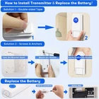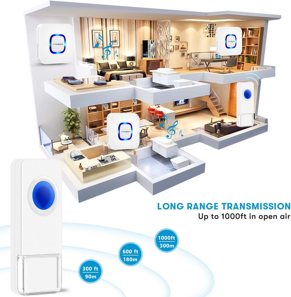 Wireless Doorbell, 3.4*1.25*0.67 inch, 2 Transmitters+3 Receivers (B17-White) Product Details Manufacturer: Coolqiya Part Number: BQ-12 Item Weight: 14.1 ounces Product Dimensions: 3.1 x 3.1 x 1 inches Item model number: Model-B Batteries: 2 12V batteries required. (included) Is Discontinued By Manufacturer: No Size: Receiver : 3.1*3.1*1 inch , Transmitter : 3.4*1.25*0.67 inch Color: 2 Transmitters+3 Receivers (B17-White) Material: ABS Pattern: 2 Transmitters + 3 Receivers(White) Shape: Square Thickness: 1 Inches Power Source: Plug in Receiver: AC 110V-240V; Transmitter: 23A 12V Alkaline Battery Voltage: 110 Volts Installation Method: Wall-Mounted & Self-Adhesive or Screw-In Item Package Quantity: 1 Number Of Pieces: 5 Type of Bulb: LED Display Style: LED lighting Mounting Type: Wall Plug Format: A- US style Switch Style: Push button Certification: CE, FCC, RoHS Certified Special Features: Waterproof Door Button(Transmitter) Usage: Commercial/Residential Batteries Included?: Yes Batteries Required?: Yes Battery Cell Type: Alkaline Description Pile: 23A 12V Alkaline Battery 【IT'S DURABLE AND SAFETY FOR PEOPLE】: Transmitter with super rating IP55 waterproof; CE, FCC, RoHS certified. 【SUPER LONG DISTANCE TRANSMISSION】: Made of high-precision electronic components, operates at a highest distance up to 1000ft. 【MULTIPLE RINGTONES】: Stereo speaker With 58 different ring tones; 5 levels volume control; blue LED flash indicator is perfect for the hearing impaired or deaf; Transmitter allows you or visitors to leave message. 【EASY INSTALLATION】: No batteries required for receiver, simply plug into power supply; Mount transmitter with double-sided tape or anchors & screws. Ring tone can be different. 【100% SATISFACTION】: Friendly customer service in 24hrs to make sure your 100% satisfaction, we offer refund or replacement for the unsatisfied products within 18 months of delivery.