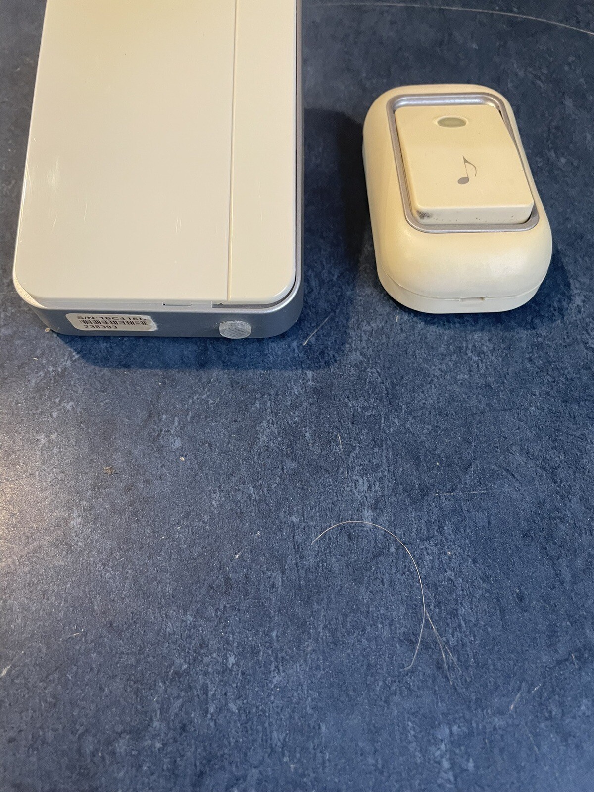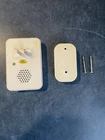 This is a used 2 piece doorbell system. Minor defect is clip on button cover is broken off and will need small piece of tape to attach. Item is sold AS IS with no refund.
