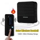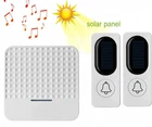 Description : Max 300m Long Range Solar Power Wireless Waterproof Doorbell Light Control Sensor With Transmitter+ Receiver Door Bell Kit Features: * unique and elegant style * Transmitter using solar power, power saved and durable *Receiver with plug, EU/US/UK models for optional * Range in open spaces: Max. 200-300m * 52 varied style of tunes for optional. One tunes can be matched one than more receiver. * 4 levels adjustable volume including silent mode * One transmitter can be matched with several receivers. One receiver can be matched with several transmitters as well. Specifications: Add transmitter or receiver Firstly plug into the socket, press volume button for 6 seconds, blue led light keep on, then press transmitter button, when receiver blue led flash, means pair successfully. It will fail paring if you can not finished within 6 seconds Attention: One transmitter can be matched with several receivers. One receiver can be matched with several transmitters as well., and with memory function once off power. Transmitter: Solar cell Working reference index:5.5V 25mA 0.13W No string of code Working current:12mA Working range: about 200-300m (on open air) Receiver: Working voltage: 90-260V Standby current: 10mA Working current: 60mA Working Frequency: 433MHZ Package Contents: 1* EU Indoor Unit(Receiver) 1* Outdoor Unit(Transmitter) 1* Mounting Base 1* Bag of Screws 1* Tape 1* User Manual Only the above package content, other products are not included. Note: Light shooting and different displays may cause the color of the item in the picture a little different from the real thing. The measurement allowed error is +/- 1-3cm. Product Photoes Package includes: