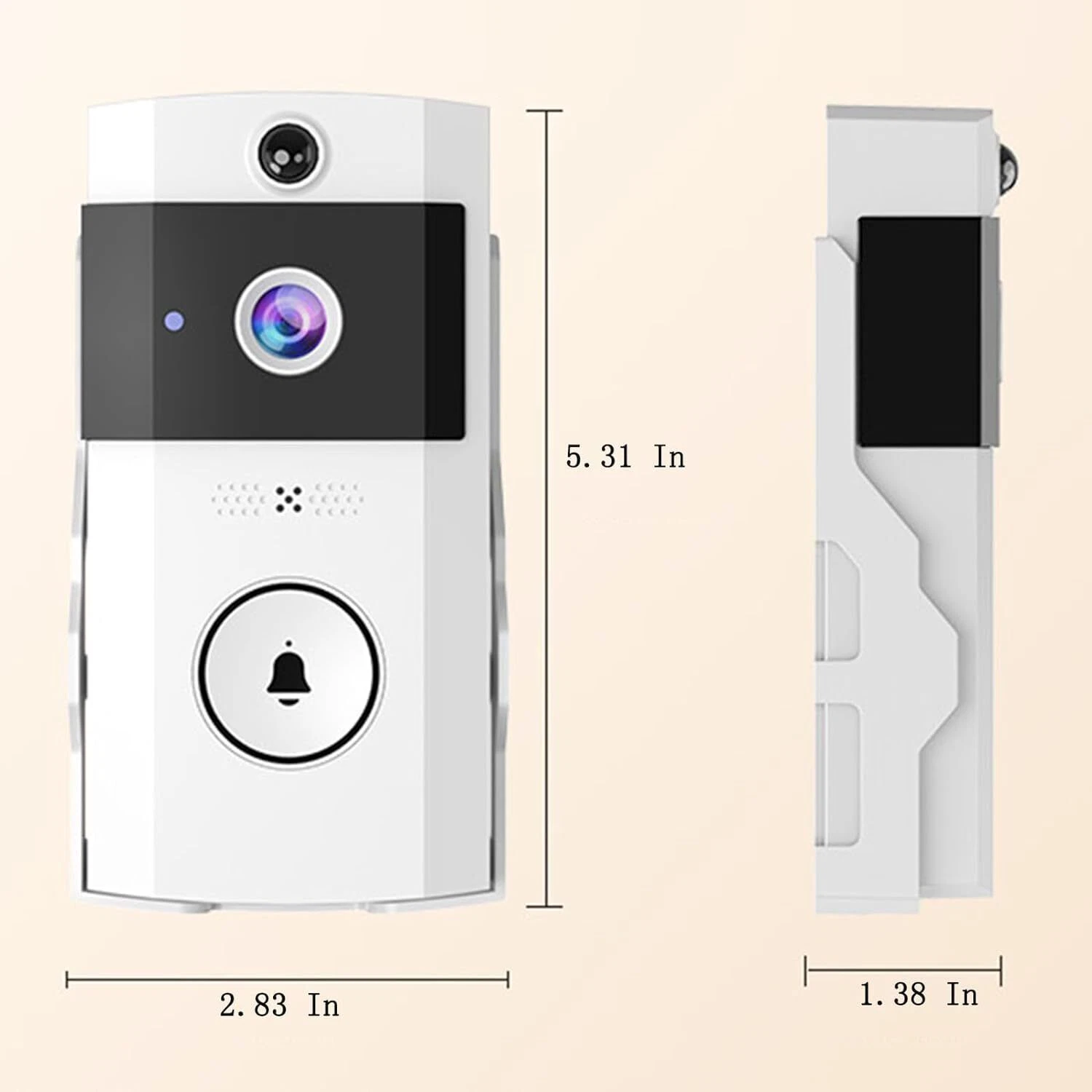 FEATURES: [Real-time APP Control & Night Vision]90° wide angle camera. Real-time mobile phone, support photos, recording, caring for your family makes you more secure.No wire needs, achieve a two way intercoms between the doorbell and mobile phone.Equipped infrared night vision, automatically open at night. [Two-Way Audio]The doorbell camera has a built-in microphone and speaker system, which provides two-way high-fidelity conversation all the time. You can have a real-time video talk through the APP with whoever in front of the outdoor camera on any occasion and situation. [Reliable and practical 2.4GHz WIFI connection]The 2.4GHz Wi-Fi range of Smart Doorbell is up to 20m (66f), it easily connects to your home’s Wi-Fi network, sending live video feed to your phone. You can see and talk to the visitor from the comforts of your bed, from work, or while on vacation. (Support 2.4G WIFI,NOT support 5G WIFI) [Bigger Battery]Disassembly free cycle charging, built in 3600mAh lithium high capacity battery, more than 3 months of normal use,Charging time 1.5 hours SPECIFICATIONS: Material: ABSColor:white Resolution: 1280x720 Visual angle: 90 ° Support network format: 2.4G WIFI Voice intercom: bidirectional voice intercom Remote real time: Real time mode supports remote real-time viewing and monitoring functions Mobile detection: PIR sensing, mobile capture Distribution network method: Bluetooth distribution network Battery capacity: 3600mAh Working temperature: -20-45 ℃ Charging power supply: 5V/1A, Type c interface Support systems: IOS 11.4 and above, Android 5 and above Package include: 1 x Doorbell Machine 1 x Internal ding dong Machine 1 x Charging cable 1 x Installation tool 1 x Manual