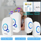 新建网页 1 Wireless Doorbell Touch Button Smart Home Security Alarm Welcome Doorbell Introduction: Modern and Contemporary Wireless Doorbell. The wireless design allows you to install in any section of your home, or business. Doorbell/Welcome/Alarm Mode in one With the Button, the receiver can be used as Doorbell; With a motion detector, the receiver can be used as Welcome entry Doorbell; With a door sensor, the receiver can be used as Alarm Doorbell Unique Ringtones with Volume Level With 32 unique ringtones and 4 volume levels, you can personalize your wireless door entry alert to your preference. Set it as a pleasant doorbell chime, or as a loud door alarm Powerful Penetration The transmission distance can reach 164 feet in open space, suitable for household doorbell. Easy installation Place your sensors and in seconds you are ready to use your system. Multiple Transmitters for Multiple Locations A transmitter can used with several receivers (max.30), also a receiver can used with several (max.30) transmitters, more convenience for you Specifications: 1. Operating voltage: AC 100-220V 2. Working current: <100 mA 3. Wireless frequency: 433 MHz 4. Operating temperature: -10 ° C-50 ° C 5. Wireless distance: 50 meters (open space)