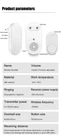 Smart Home Wireless Doorbell Just press the button, doorbell will receive the signal and you will hear the sweet tunes immediately. remind you of the arrival of visitors. 4 Volume adjustment Adjust the appropriate volume according to different environments. And there are 32 music melodies to choose from. power-off memory function After a power outage. Don't worry about needing to redesign your ringtones. It has a memory function. will revert to the previous ringtone. ergonomically designed button is easy to press Strong signal The reception signal is strong. Can receive signals through walls. High decibel Honeycomb sound cavity design, make the ringtone more pleasant. The ringing sound covers an area of about 300㎡. . Low power consumption Batteries can work for a long time. Frequent battery replacement is not required. Easy to install The pressing area of the button is enlarged, which makes it easier to press, and even the high-grade damping sense, the elderly and children can easily ring the doorbell. Slim design Does not take up adjacent outlets. Humanized design. Product Include A: 1* Dingdong + 1* button B: 1* Dingdong + 2* button C: 2* Dingdong + 1* button D: 2* Dingdong + 2* button Shipping: Product will be shipped within 3 days (except holidays and public vocation) after payment received. As to the shipping ways, we will choose the best and fastest one for you according to different countries. All of our shipping way will have the tracking number. If you are from Russia, please leave your full name to me,thanks!! If you choose the DHL or Fedex,The policy of each country is different, you may need to pay additional customs fees.We can't control it. If you have any other requirements. Please leave a message to me. Each buyer has the obligation to clear the customs.If the parcel can't be cleared, it will be destroyed. This will be very big loss.To avoid the loss. Please select a suitable shipping services.thank you. Warranty: All the product wil not print brand logo, product with logo is not easy to pass the Customs. We will do full test before send this product, so you will get a perfect product, All the alarm host have Sealed label, please not tear off the label. Not all the 433MHz accessories compatible with all the 433MHz alarm system in the market. Please ask me if have problem. Service Time: 10:00am - 22:00pm in Chinese time, I will reply you as soon as possible if you send message at other time. Feedback: At a very small probability. Sometimes the deliver time may delay several days, because of the bad weather or during the busy season, please do not worry. Just ask me to delay the protect time. If you are satisfied with this product, please leave me 5 stars feedback, I will service better and better ! If you have any question, before leaving us a negative feedback, please give us the opportunity to resolve the problem . We will try our best to give you a satisfied solution way.