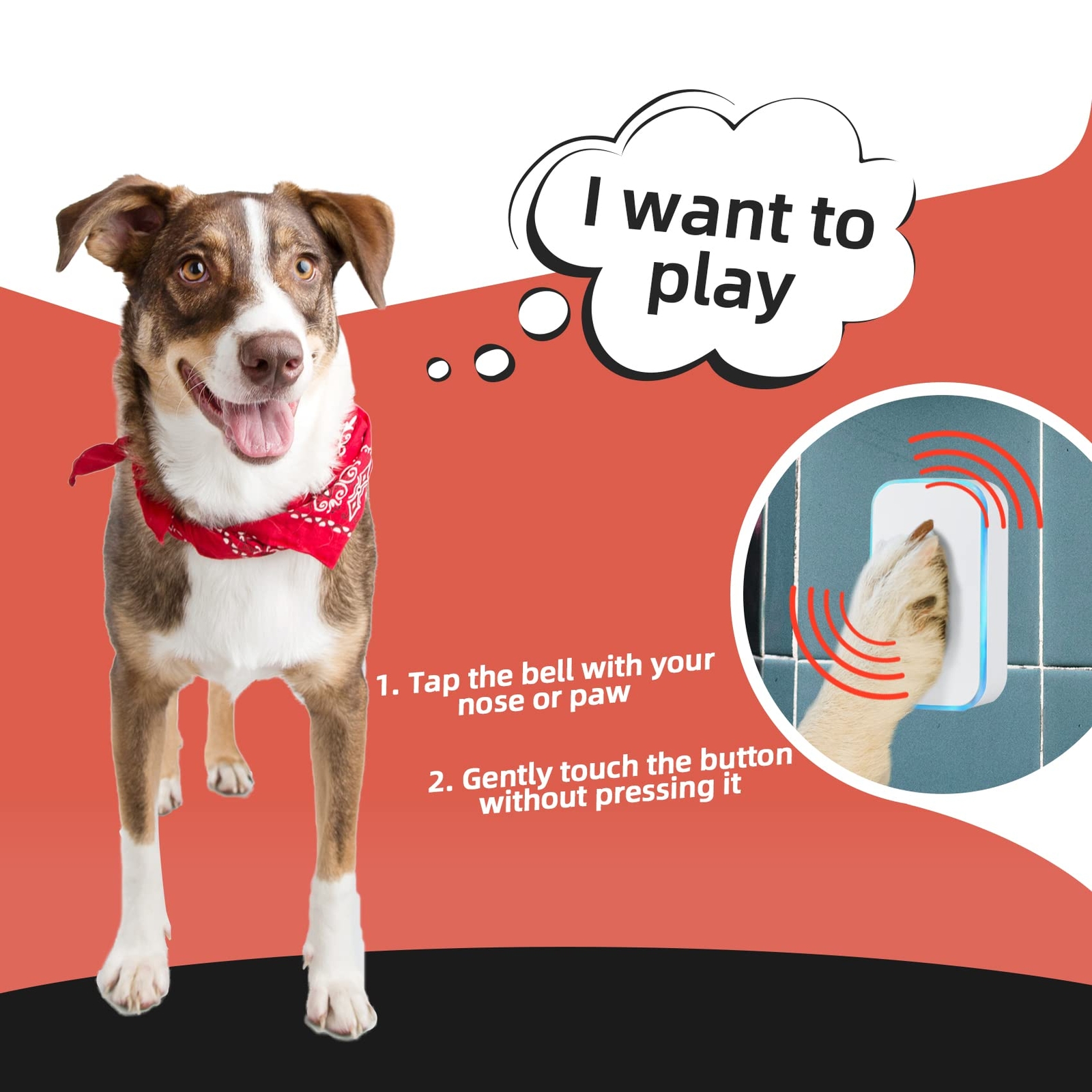【Designed for Dogs】dog touch door bell is designed with waterproof touch button, no need to press hard, and is suitable for almost all small, medium and large dogs. 【Flashing Light Dog Bell】The dog bell for door potty training has 3 modes, only light - only ring - flashing when ringing. You can choose different modes for different occasions, the mute mode is suitable for those who don't want to be disturbed by the ringtone, and ring mode with light for the hearing impaired or deaf. 【Multiple Ringtones】This dog potty bell has 36 ringtones and 4 volume levels (0-30-70-110dB) to choose. A variety of receiver functions of the door bell for dog makes it a good dog training tools, and the power-off memory function without resetting the music. 【Ultra-Long Wireless Range】This pet door bell is operating range up to 1200ft in the open area, ensures you to hear and answer the dog's needs in time.Please keep the receiver away from electronic devices such as TV or WIFI, and do not install the communication button on metal. 【Easy to Install & Warranty】The dog doorbell are very easy to install and use, just need to gently press the side of dog buttons by the dog's nose or paws. We are always at your service, please feel free to contact us if you have any questions.