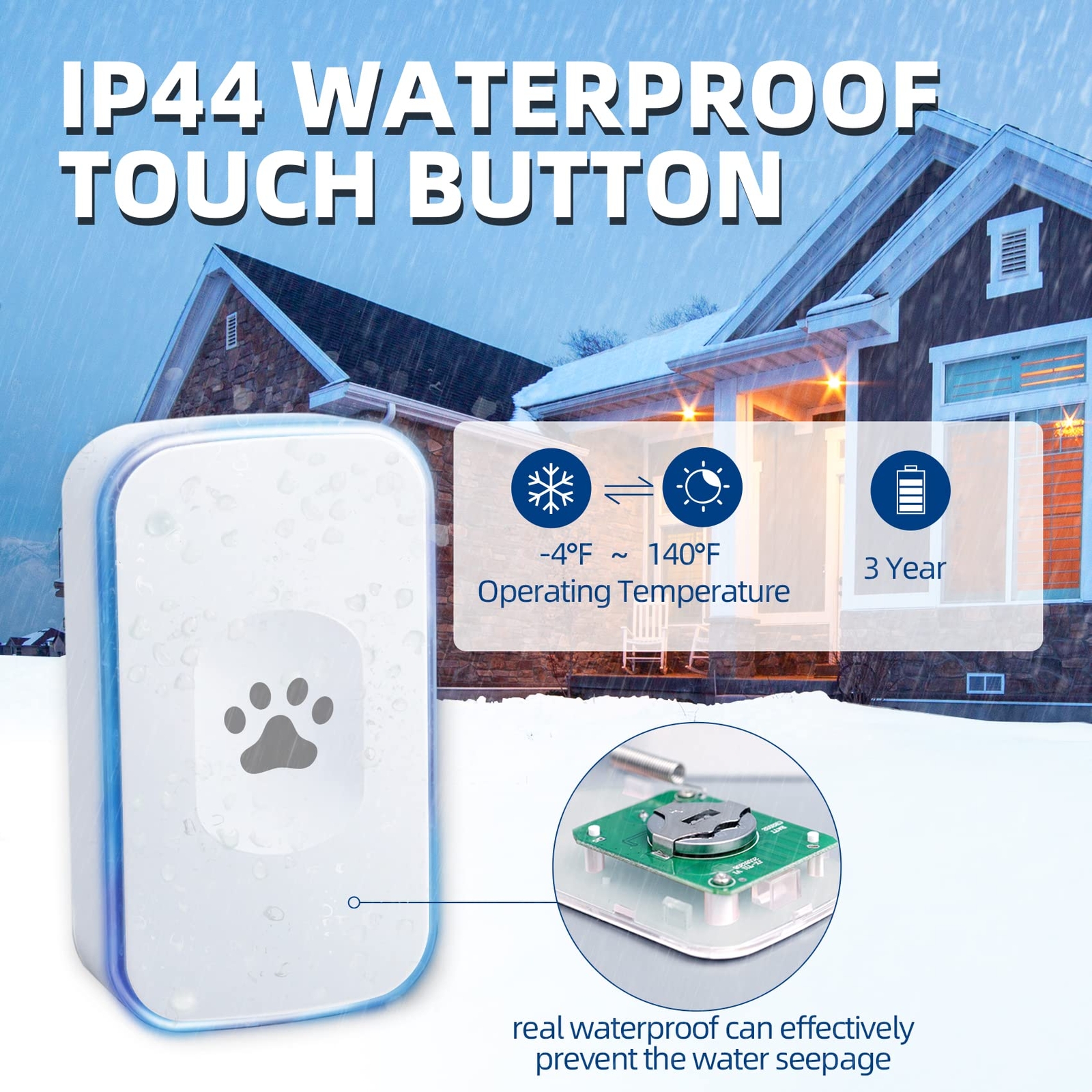 Wireless Doorbell with Flashing Light for Dogs 1200ft Range Waterproof Touch Bell