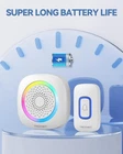 Product Page Wireless Doorbell with RGB Light 60 Melodies 1300ft Range Waterproof Receiver Description: Features: Plug & PlayExperience the convenience of our wireless doorbell receiver that requires no batteries. Versatile enough to work in any space, like home, garden, office, classroom, store. This wireless doorbell ensures that you'll always be aware of your visitors. Unique RGB Light DesignThis doorbell is not only equipped with an RGB light indicator but also features a convenient silent mode. When switched to silent mode, the RGB light will flash to notify you of a visitor, ensuring that you won't disturb your sleeping baby. 60 Melodies, 5 Volume Levels & Memory FunctionThis door bell ringer wireless offers 60 selectable melodies, 5 adjustable volume levels ranging from 0dB to 100dB. It has a memory function that retains your last chosen melody and volume setting, even during a power outage. IP66 Waterproof & DustproofThe wireless door bell is equipped with an IP66 waterproof rating, ensuring its resilience against a wide range of weather conditions. It can withstand temperatures from -4°F to 140°F, including sunny, rainy, and snowy conditions. 4.5 Years Using TimeThe transmitter of door bell equipped with a CR2032 lithium battery, it ensures reliable operation for up to 4.5 years without the need for frequent replacements. 1300feet Cordless RangeThe TECKNET wireless doorbell boasts a working range of up to 1300feet in open spaces without disrupting other nearby cordless devices. A robust and stable radio signal ensures you'll never miss a visitor. Note: The provided transmitter contains batteries, whereas the receiver does not (Requires 3 AA batteries). Lifetime SupportIf you are not satisfied with our product or service, please feel free to contact us. Each TECKNET product comes with a lifetime support (registration required).