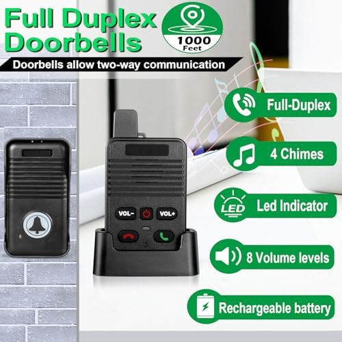 Menu 1. We require immediate payment. 2. We currently accept payment via eBay managed payments only. 3. Once payment is cleared, we will dispatch your shipment within 1-3 business days. Please refer to the "Shipping" tab for more information regarding shipping speed to your destination. Wireless Doorbell, Hands Free Intercom Doorbells 1000ft Range, Full Duplex Two Way Communication Door Bell for Home, 8 Volume Levels with 4 Chimes & LED Flash (2Pack Black) Product description Work Out of Box: Our home wireless doorbells have passed FCC certifications. Get rid of those traditional doorbells that don't communicate. Enjoy the safety and confidentiality of our amazing intercom doorbell! This wireless doorbell has been paired before delivery to be used out of the box. Full Duplex Doorbell: Our Intercom doorbell brings you closer to your visitors by allowing hands-free, real-time two-way communication. You can talk to your visitors directly through this wireless intercom doorbell without having to get up to answer the door. Whether doorbell wireless indoors or outdoors, you can experience the convenience of two-way communication with a full duplex doorbell. Powerful Intercom Doorbell: This wireless doorbell will be your wise choice! It also offers 4 different ringtones and 8 adjustable volumes in an open space range of more than 1,000 feet, and it can be paired with multiple wireless door chime for added convenience, so you won't miss any visitors. Our outdoor wireless doorbell gives you peace of mind for your home and business. High Quality Doorbell: Our intercom doorbell comes with an indicator light and low-battery voice notification, ensuring you're always aware of its status. Doorbell wireless ready to handle any weather and can operate within a temperature range of -4°F to 140°F. We've carefully designed two doorbell installation methods to meet your needs. Each outdoor wireless doorbell transmitter has screws installed at the bottom to prevent anyone from taking it. Wireless Doorbell Kit: Chime including:2outdoor transmitter and 2 doorbell receiver, 2 double-sided mounting tape, 2 anchors, 2 screws, 2 power cords, 2 power brick, 2 charging stand, and 2 user instruction. PLEASE MESSAGE US IF YOU HAVE ANY OTHER QUESTIONS, AND MANY THANKS FOR READING ALL OF THIS. Copyright ©#. All Rights Reserved.