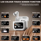 Description Features: 1. Touch screen playback control. 2. Earphone volume control. 3. Noise reduction/transparency switching. 4. Uniformer setting. 5. Alarm/timing settings. 6. Screen brightness adjustment. 7.15 language switching. 8. Lock screen wallpaper settings. 9. Headphone positioning search. 10. Time/date settings. 11. Short video switching and liking. 12. Remote control of mobile phone for taking photos. 13. LED lighting. 14. Supporting languages: English, Chinese Traditional, Simplified Chinese, Korean, Malay, Thai, Vietnamese, German, Spanish, Russian, Portuguese, Arabic, Turkish, French, Japanese. Specifications: *Product model: wireless earphones *LCD screen: touchable *Waterproof level: IPX level 5 waterproof *Bluetooth version: 5.4 *Transmission distance: ≥ 10 meters (barrier free) *Transmission rate: 24MBPS *Long talk time: 5 hours *Listening to music for 5 hours *With charging case: 36 hours of playback *Input voltage: DC5V 1A *Charging port: Type-c *Charging time: 1.5 hour *Standby time: 240 hours *Earphone battery capacity: 50mAh *Charging compartment battery capacity: 400mAh *Product material: ABS *Product color: White Tip: 1. Due to manual measurement, please allow an error of 1cm! 2. Due to different display resolutions, please consider slight color differences!