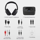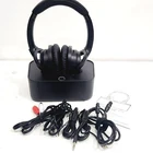 Wireless Headphones for tv Watching,TV Headphones Wireless with Bluetooth 5.2 Transmitter Charging Dock,Optical,Coaxial,AUX,RCA,Plug n Play,50Hr Playtime,No Delay,165ft Long Range Product Condition: Great Condition - PRE-OWNED (as you can see in pictures) Product Features: - High-definition audio with 40mm drivers and aptX LL technology for ultra-low latency under 40ms enhances TV and movie watching. - Up to 50 hours of playtime on a single charge; quick 2-hour charging via the docking station with built-in overvoltage protection for safe night charging. - Wide compatibility with 4 input (Digital Optical, coaxial, 3.5mm, USB) and 2 output connectors (3.5mm, Digital Optical) for use with most TVs, whether Bluetooth-enabled or not. - Bluetooth 5.2 ensures stable connectivity up to 165 feet, allowing freedom of movement without compromising audio quality. - Soft leather ear cups provide all-day comfort; factory-paired for easy Plug n Play setup, and can pair separately with Bluetooth devices for versatile audio use. Disclaimer policy: Hey there! Just a heads up, this item is being sold in its current condition with no added warranties. The box may show some wear and tear or have been re-boxed, but the item itself is still in great shape!