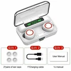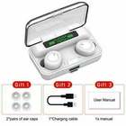 Wireless Headphones Waterproof Headset Earbuds Noise Cancellation for Bluetooth Product Description Feature: Bluetooth 5.1 Technology: Adopt Bluetooth 5.1 Technology, suitable for most smart Bluetooth devices. The connection range is up to 10m. Comfortable: Ergonomic and lightweight design fits comfortably and snuggly in your ear. Will not feel pain after long time using. Suitable for long time wearing. Stereo HD Fidelity: Our wireless headphones feature high-performance composite diaphragms that combine and reduce sound distortion, provide deep bass and treble, and provide a pleasant musical experience. With high-quality Bluetooth headphones with built-in microphone, you can make calls easily. So, you can chat with your friends or speak more clearly while driving and listening to music without being affected by external influences. TWS Stereo Mode: When two headsets are interconnected in TWS technology, they form a surround sound system, which allows different channels to change in space, bringing a rich sense of hearing. LED Power Display And 3500mah Battery: Bluetooth headset with 8000mAh large capacity charging box, talking time up to 6 hours. Smart LED power display, you can predict the power of the headset. Siri Voice Assistant: One-click call, long press for 2 seconds can call Siri voice assistant, convenient and quick to talk with your personal assistant. Easy Operation: The convenient touch control operation helps you get rid of discomfort of traditional button. Memory Pairing: After connecting once and taking it out of the charging compartment, it can automatically connect and pair. Specification: Item Type: Wireless Headphone Material: ABS Bluetooth Version: 5.1 Transmission Space: 10m Protocols: APD, AVRCP HSP, HFP Impedance: 32Ω Headphone battery capacity: 50mAh (included) Charging box battery capacity: 3500mAh (included) Working time: 5-6 hours USB output: 5V / 1A Charging interface: Type-C Color: Black, Black+Blue, Black+Blue, White, White+Red, White+Blue (Optional) Size Box: 8.8cm x 6cm x 3cm / 3.46 "x 2.36"x 1.18 " Package List: 2 * Earphones 1 * Charging Case 1 * Charging Cable 1 * User Manual 6 * Earcaps