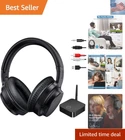 Wireless Heads for TV, Over-Ear Bluetooth TV Headset for Seniors, 196ft Wireless Range Support Optical,AUX, RCA and USB Output,High Volume, Hi-Fi Audio&No Delay,40 Hours Playtime Perfectly Synced Visual-Audio: wireless heads for TV featuring latest wireless GHz technology (NOT Bluetooth) ; it reduces the audio lag down to as low as 28ms,significantly less than the 220ms of Standard Bluetooth and the 40ms of aptX Low Latency, you will experience NO lip-sync delay making you immersed in enjoying watching your favorite TV programs in bedroom. Immersive TV Watching For Seniors: Our TV heads wireless for seniors are built-in the audio amplifier, provides Hi-Fi stereo sound to watch tremendous live ball games, movies and TV shows without disturbing your children or lovers when they are sleeping or working at night. Extreme Comfort Design: Soft adjustable over ear pads are made with premium protein leather and memory sponge, shaped for ergonomic fit, our heas for TV watching offers you a comfortable wearing experience without any pressure for long time use. Hassle-Free Set Up & Wide Compatibility: Turn on the transmitter and our wireless heads for TV, they will be automatically connected. support most TVs with Optical Audio,AUX(, RCA, or USB digital output port. While our wireless heads for tv watching also can be worked as a sperately Bluetooth headset,which directly connect it with your mobile , laptop, AV receiver and so on via Bluetooth. Up to 40 Hours Playtime: The heads wireless for seniors can run up to 40 hours per full charging. Super battery capacity with 1200mAh, no more worrying about the sudden battery drained while watching all shows. offers product satisfaction and customer service, any problems please click your order to contact with us.