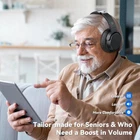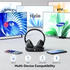 Wireless Headphones for TV, TV Headphones Wireless for Seniors, Multi-function Transmitter Charging Base, Audio Sync, 65Hrs Worktime, Bluetooth Headphones for TV, Gift for the Elderly & Parents * All-round Enjoyment: Wireless headphones for TV provide an extremely clear sound experience, making every detail clear, whether it is dialogue, music, or sound effects, it can be perfectly presented as if you are part of the movie. Not only movies, users can also use this headset to enjoy music and TV programs. Whether it is delicate string music or passionate rock, TV headphones can present the best sound effects, allowing users to enjoy a perfect audio-visual experience. * Unparalleled Viewing Experience: Wireless headphones for TV watching with Low-latency Audio Tech ensure every sound detail perfectly synchronizes with the visuals. Whether it's the crowd's cheers, footsteps on the field, or players' shouts, you'll hear it all as if you were there. Every thrilling pass and precise shot is in sync with the TV, with no delay. Let you enjoy every spectacular moment of the game without compromise. * Enhanced Hearing Focus: Wireless TV headphones are ideal for the elderly and hearing-impaired. TV headphones wireless for seniors enhance the sound clarity and volume effortlessly, with personalized volume adjustment. This integration helps families enjoy movies together, overcoming isolation caused by hearing issues. They're also perfect for late-night movie buffs, providing high-quality private listening without disturbing others nearby. * Unrestricted Listening Pleasure: The wireless design of headphones for tv frees you from the constraints of cables, allowing you to move freely around your home. Whether in the living room, kitchen, or bedroom, enjoy high-quality audio without needing to return to the TV to adjust the volume frequently. Whether vacuuming or cooking, the stable connection ensures you won't miss any exciting content while efficiently completing housework. Make life easier and entertainment more enjoyable. * Multi-Device Compatibility: Bluetooth headphones for TV feature versatile connectivity, supporting optical fiber, 3.5mm AUX, and RCA interfaces, alongside advanced Bluetooth 5.2 technology. This ensures compatibility with a wide range of TV brands, making setup effortless. It also connects to computers and cellphones via Bluetooth, delivering stable audio transmission for a premium listening experience. Whether watching TV at home or enjoying music and videos privately, it caters to your needs. Product Description Previous page Low Latency <40ms Live commentary and action in perfect sync Next page Wireless Headphones for TV 1 Ultra-Low Latency 2 Move Freely 3 HIFI Sound Quality Previous page Synchronizing sensory pleasure with the family. Next page TV Headphones Wireless for Seniors 1 Share Joyful Times 2 Immersive Viewing 3 Peaceful Moments Previous page Next page A Thoughtful Gift for Parents, Lovers, and Friends