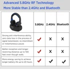 Enjoy your TV viewing experience with these wireless headphones that come with a 5.8Ghz RF transmitter charging dock. The headphones have an adjustable and soft headband that ensures a comfortable fit for extended use. The volume control allows you to adjust the sound according to your preference. The headphones are made of plastic and come in a sleek black color that complements any style. They have a wireless range of up to 300 feet and operate on RF, VHF, and 5.8GHz wireless technologies. The retractable cable feature ensures that you can enjoy your music or watch your TV without any interruption. The headphones have a battery life of up to 20 hours, and the charging time is just 2 hours. Get your hands on these wireless headphones and enjoy a comfortable and convenient viewing experience.