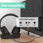 【No Audio Delay & Quality Sound】 These wireless tv headphones are equipped with Bluetooth 5.1 chips, which can delivery superior sound, and sound closer to the original information, watching hockey, you can hear the puck hit the stick and even hear the players on the ice, giving you an immersive experience. Also, tv headphones wireless provide audio latency of less than 40ms, allowing you to synchronize audio and visual 【Plug and Play & Long Range】 With Bluetooth technology, this wireless tv headphones has a working distance of up to 100ft (30M), You can watch a talks show in the living room and go to the fridge for a drink without missing a beat. No need to Bluetooth pairing, simply plug the MD-K1 transmitter into the TV's power and audio output port, turn everything on, and they’ll connect with each other, It's a optimal, reliable tv wireless headphones 【Universally Compatible】 Thanks to the optical, AUX, and RCA input cables of MD-K1, This headphones for tv are compatible with all TVs on the market, regardless of whether the TV itself has Bluetooth functionality. This wireless headphones for tv can be used as a stand alone Bluetooth headphones or connect to the headset base and your phone at the same time, allowing you to use them anywhere 【Lightweight and Comfortable】 The earmuffs of this bluetooth headphones for tv are made of soft and breathable foam ear pads. They can seal the music and let your ears "breathe", even if you wear the cordless headphones for tv all day long, they will not hurt your ears. The weight of tv headphones is 8 ounces (approximately 234 grams), while its competitors weigh 10 ounces (290 grams) 【TV Headphones Wireless for Seniors】 With this wireless headphones, you can watch your favorite programs/movies at your own volume, and you won't disturb your family or neighbors anymore. The high volume is perfect for seniors with hearing impairment, making it the best wireless headphones for tv watching, It can last for 30 hours of battery life when fully charged, and is also the best companion for long-distance travel