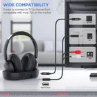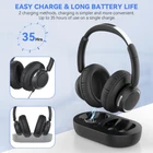Perfect for Watching TV: These headphones for tv offer clear sound and a private listening, enabling you to relish your preferred content at your volume without inconveniencing those around you. It's beneficial for individuals sharing space with roommates or desiring to indulge in late-night TV without disrupting anyone's sleep. Low latency technology further contributes to an engaging audio experience, allowing you to fully immerse in movies and music Long Battery Life: Charge your tv headphones wireless for seniors effortlessly by either placing them on the charging base or connecting the headset directly to the included USB-C charger. You can ensure your wireless headphones for tv are always ready for action. Revel in up to 35 hours of uninterrupted listening pleasure on a single charge, you'll enjoy your favorite TV shows all night long without worrying about running out of battery Universally Compatible: wireless tv headphones provide universal compatibility, seamlessly connecting to any TV equipped with Optical/RCA/3.5 mm AUX Audio Output ports available on the market (HDMI audio output is not supported!). Enjoy stable and reliable connectivity up to 100 ft(30 m), even penetrating through walls. You can move around home unrestricted without worrying about the audio cutting out, whether in the kitchen, backyard, or bedroom Over Ear Comfortable: The tv headphones wireless boast a design crafted from premium soft cotton material for both ear pads and headband, breathable and lightweight, ensuring all-day comfort and a snug fit for your ears. It's ideal headphones for elderly seniors or those experiencing hearing difficulties. Additionally, we have a strong after-sales team. If you have any questions, please don't hesitate to contact us and we will reply within 24 hours Multiple Usages: Connect the transmitter dock to your TV, power everything on, and you'll be good to dive into TV entertainment. But that's not all, the bluetooth headphones for tv can also work without the base. You're not limited to only your TV setup, these tv headphones can go independently with other Bluetooth-enabled devices, you are groove with the audio delights whether you're at home or on the go